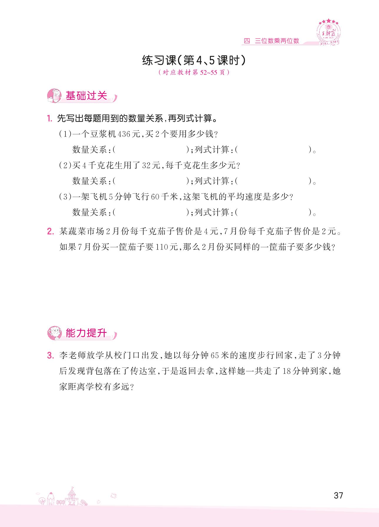 2022上册四年级数学人教版 四 三位数乘两位数——练习课(第4、5课时)