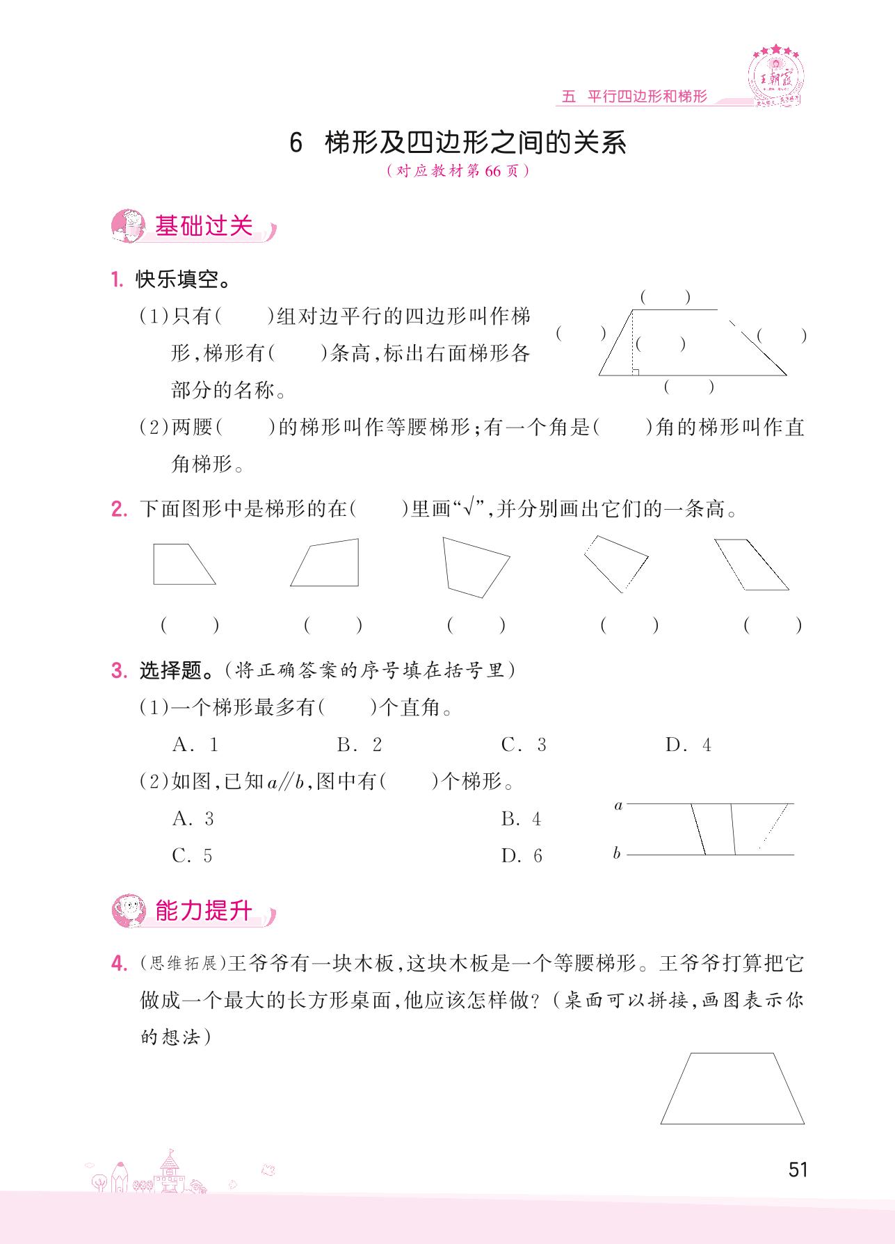 2022上册四年级数学人教版 五 平行四边形和梯形——6 梯形及四边形之间的关系