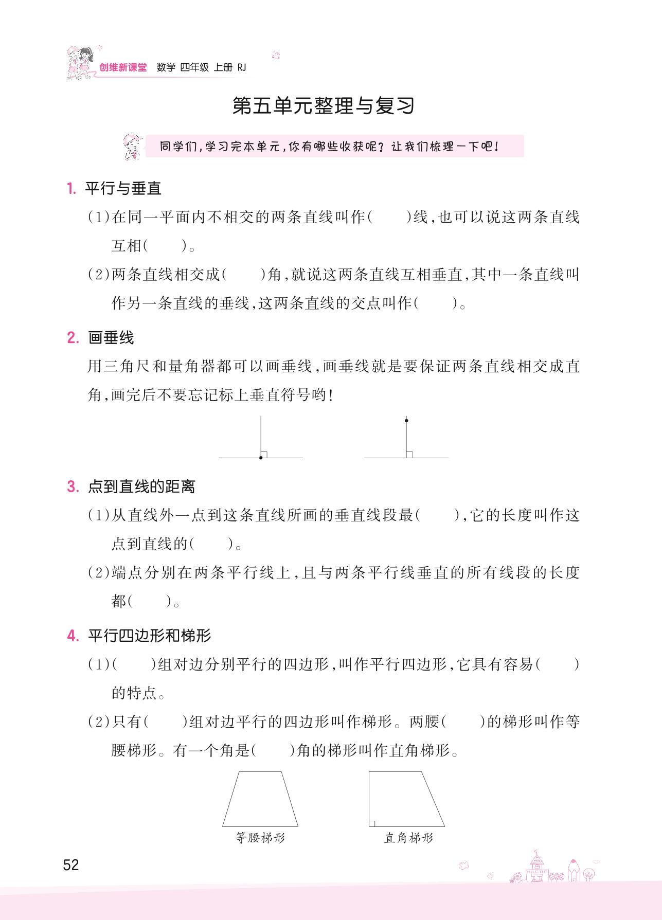 2022上册四年级数学人教版 五 平行四边形和梯形——第五单元整理与复习