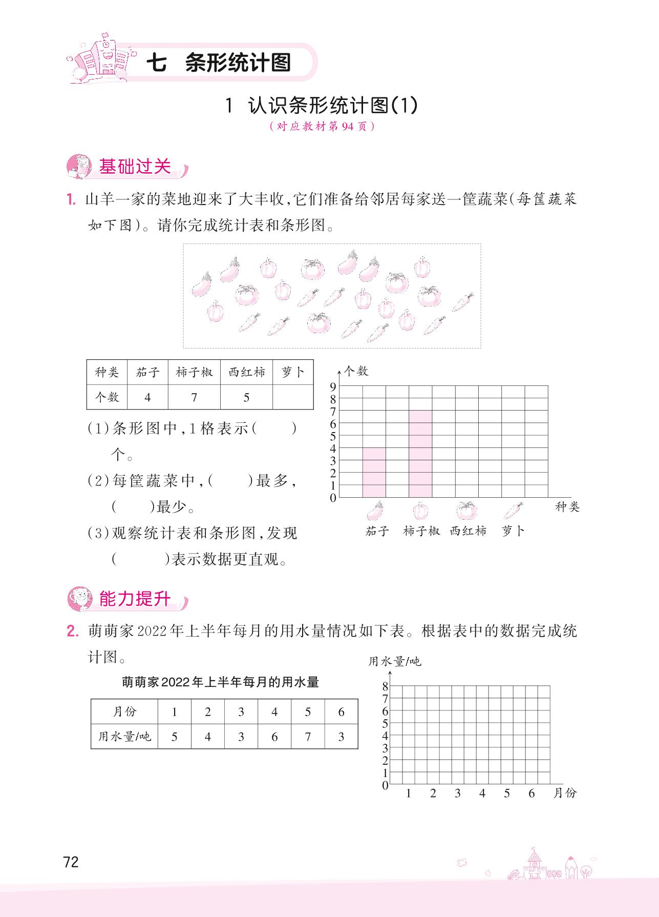 2022上册四年级数学人教版 七 条形统计图——1 认识条形统计图(1)