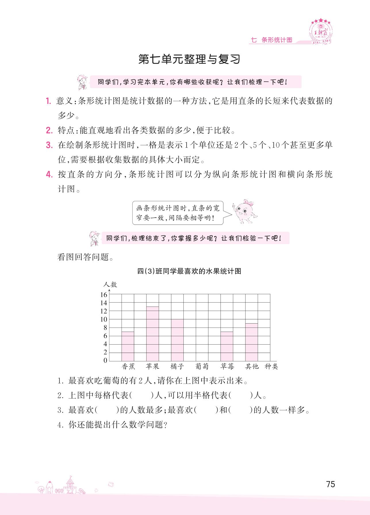2022上册四年级数学人教版 七 条形统计图——第七单元整理与复习