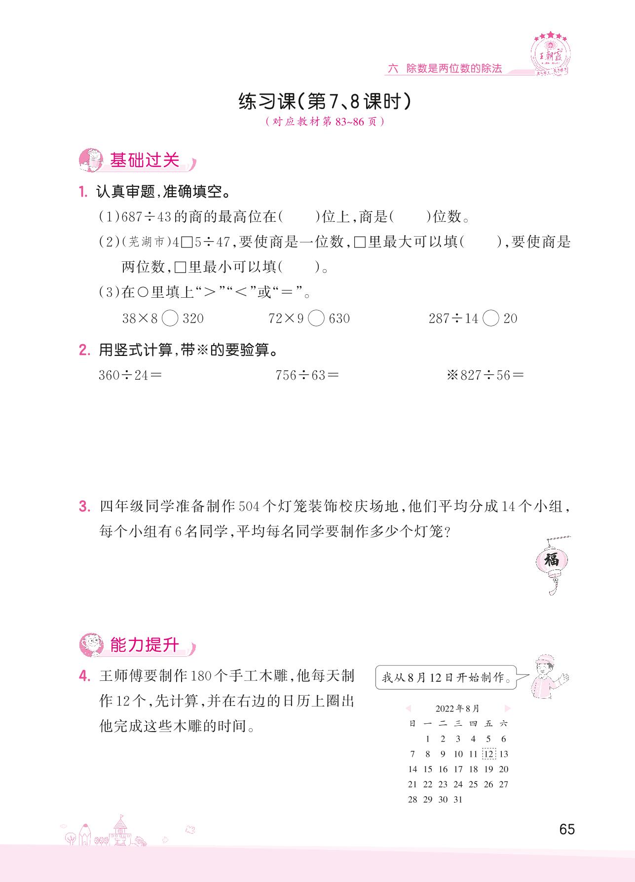 2022上册四年级数学人教版 六 除数是两位数的除法——练习课(第7、8课时)