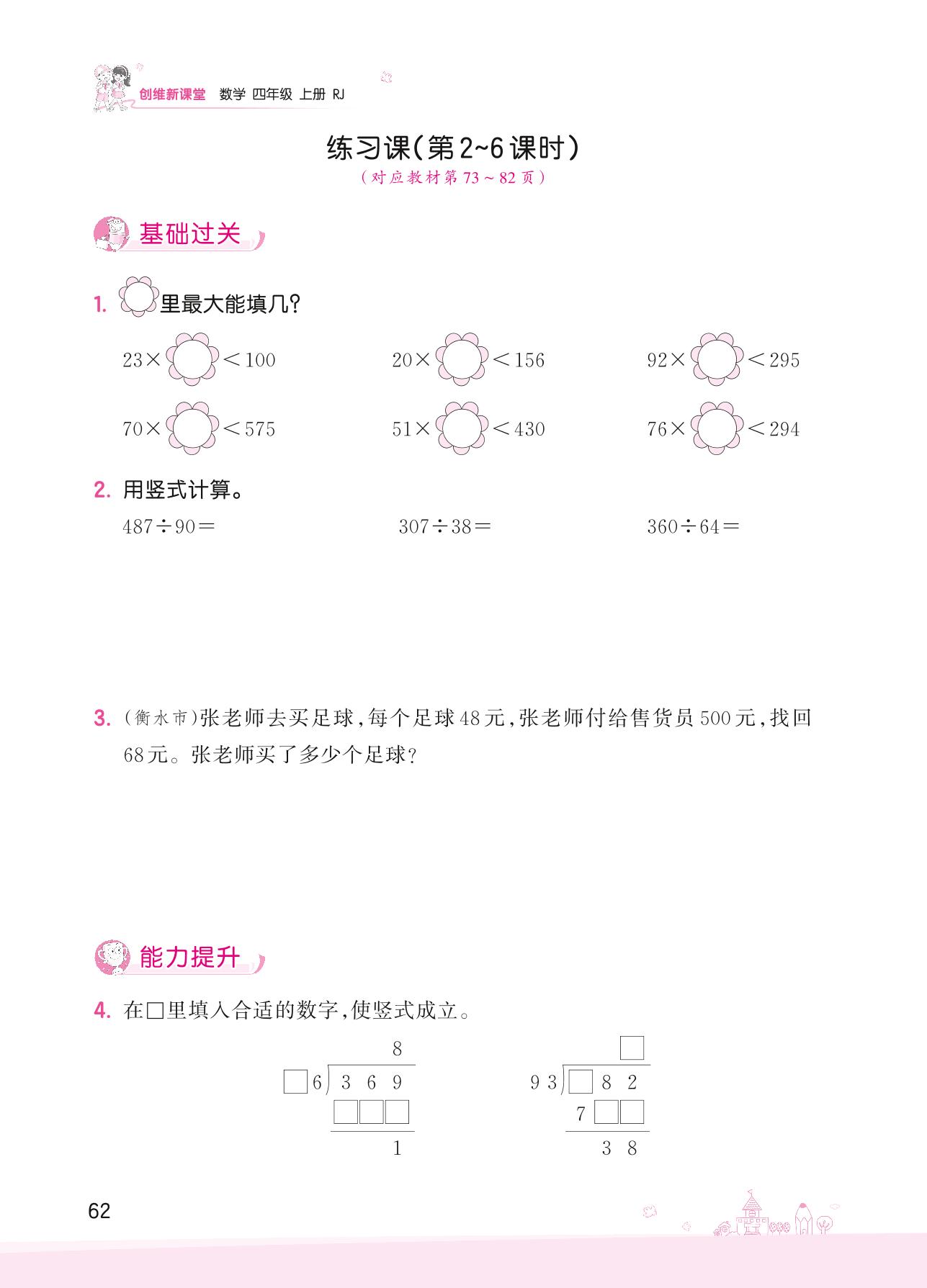 2022上册四年级数学人教版 六 除数是两位数的除法——练习课(第2~6课时)