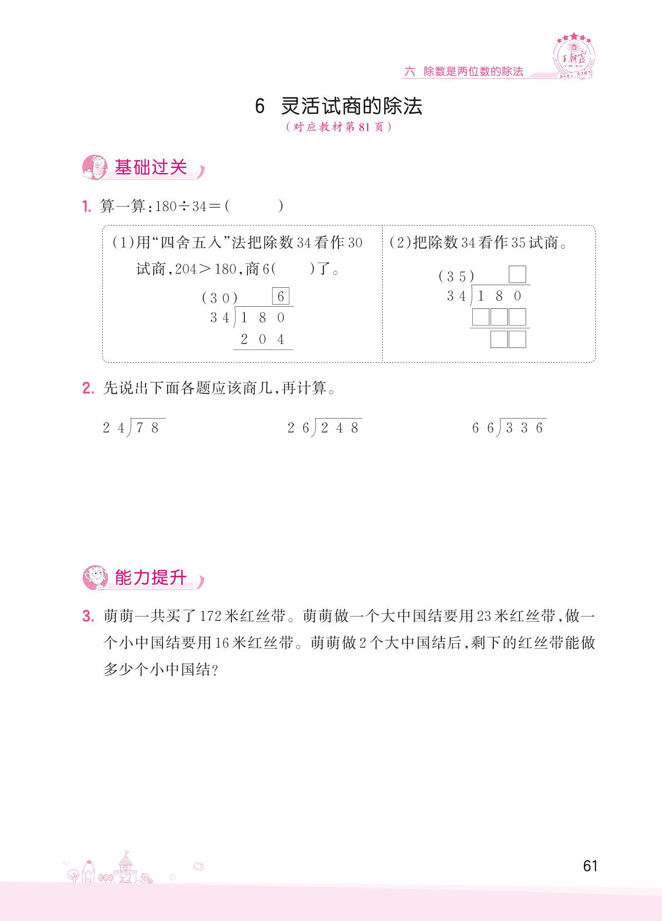 2022上册四年级数学人教版 六 除数是两位数的除法——6 灵活试商的除法