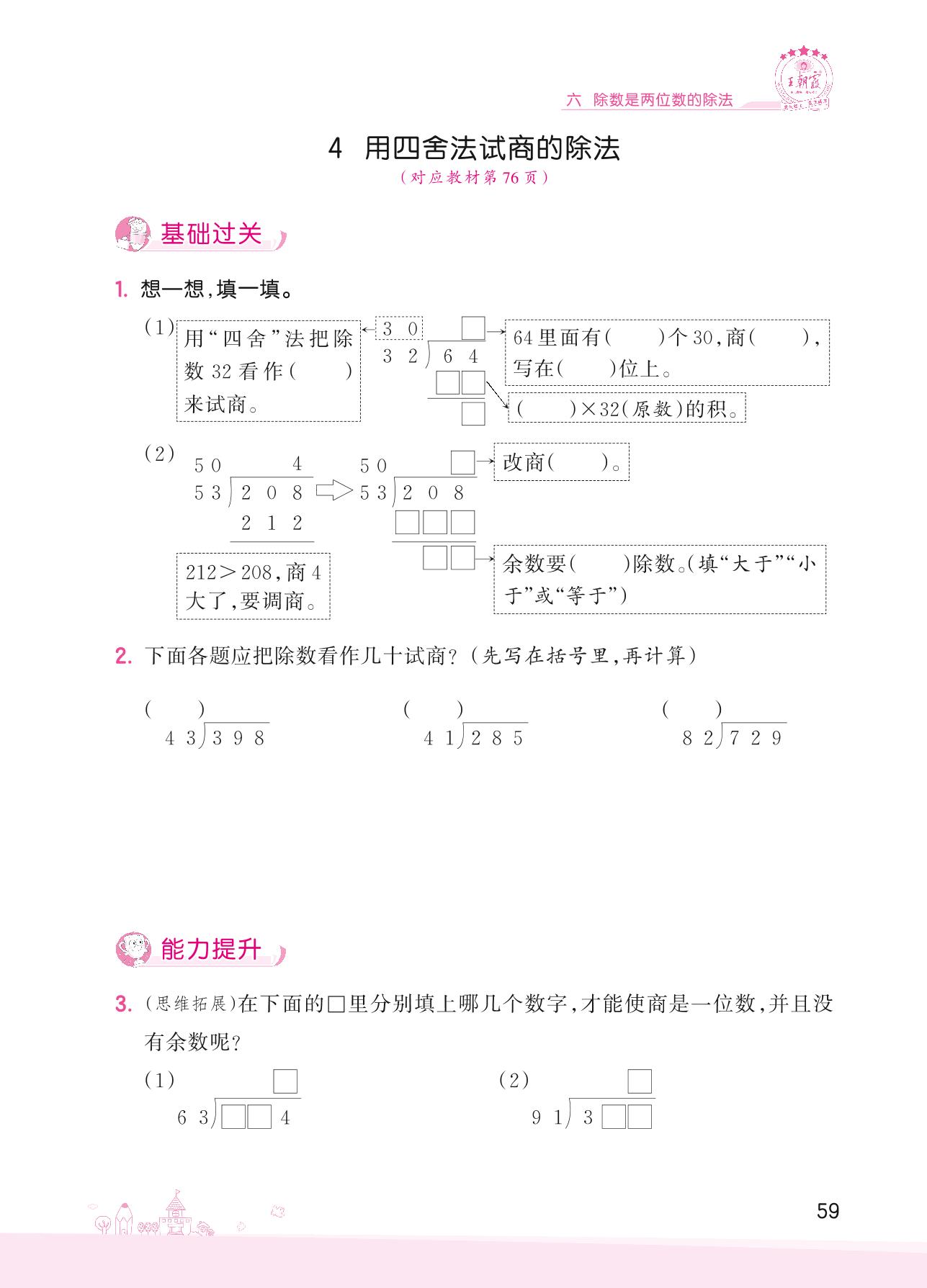 2022上册四年级数学人教版 六 除数是两位数的除法——4 用四舍法试商的除法
