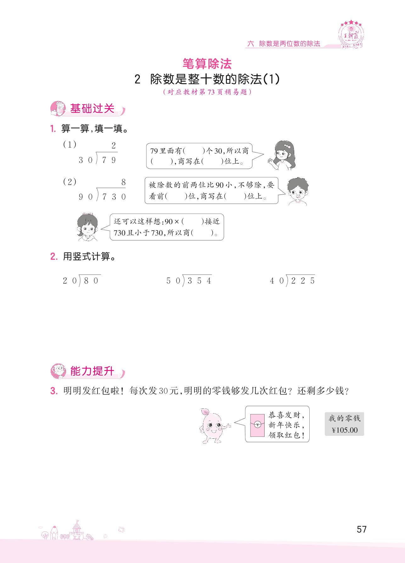 2022上册四年级数学人教版 六 除数是两位数的除法——2 除数是整十数的除法(1)