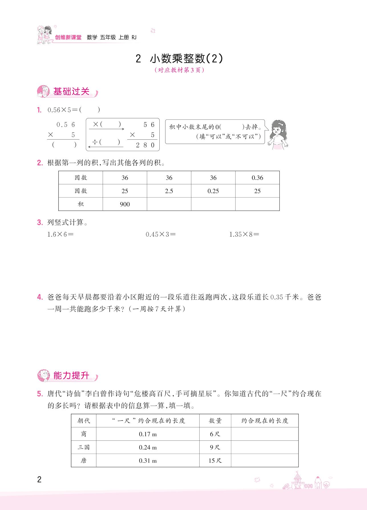 2022上册五年级数学人教版 一 小数乘法——2 小数乘整数(2)