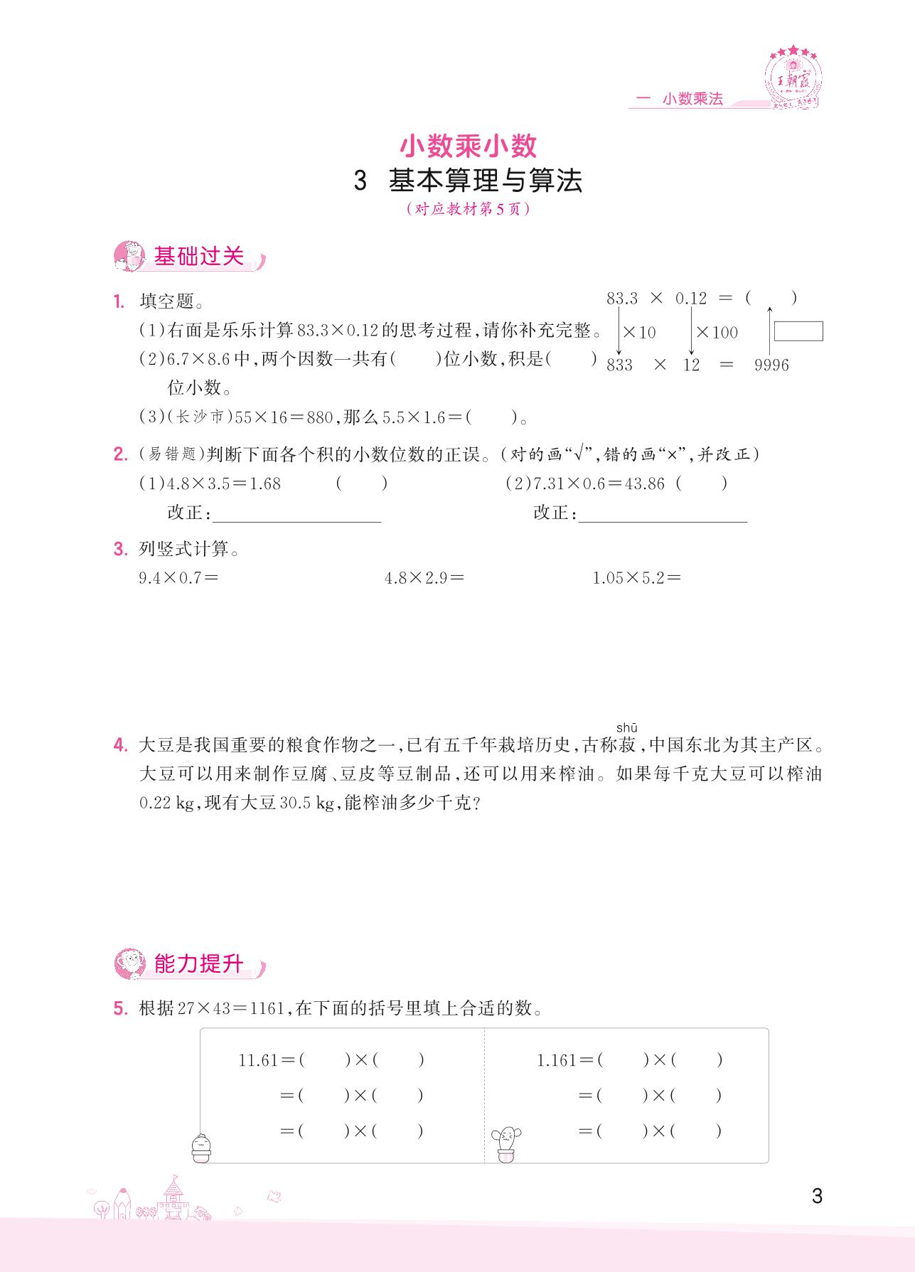 2022上册五年级数学人教版 一 小数乘法——3 基本算理与算法
