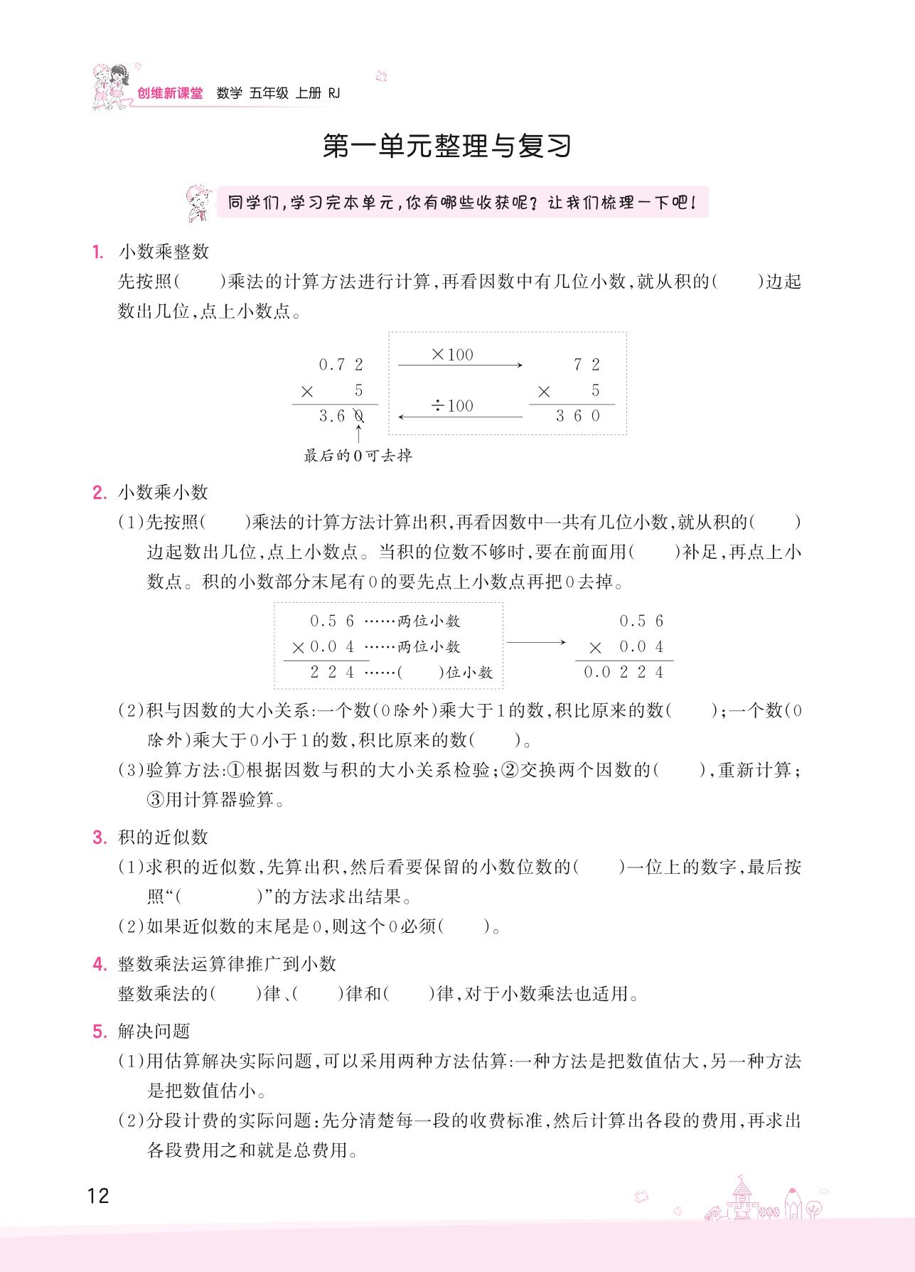 2022上册五年级数学人教版 一 小数乘法——第一单元整理与复习