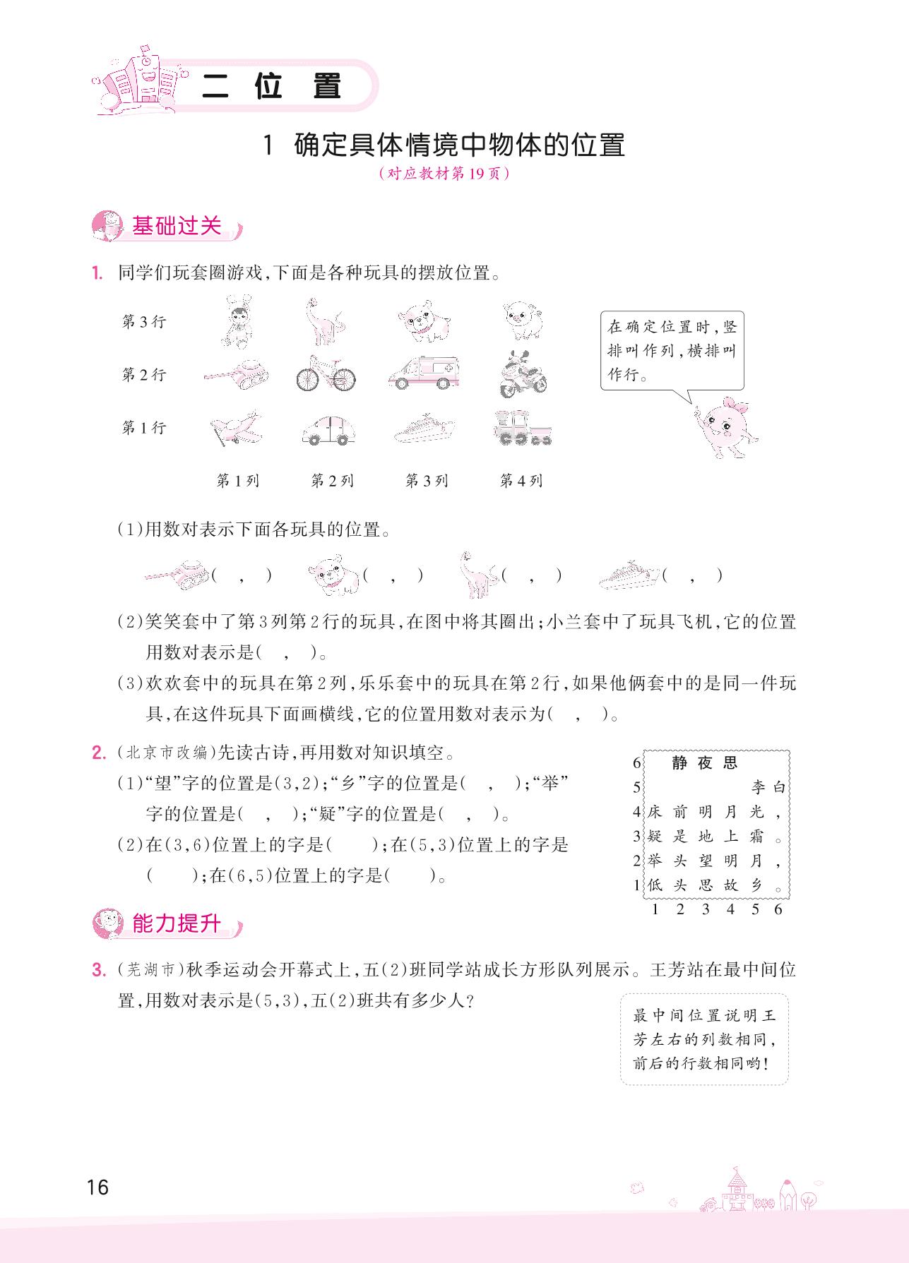 2022上册五年级数学人教版 二 位置——1 确定具体情境中物体的位置
