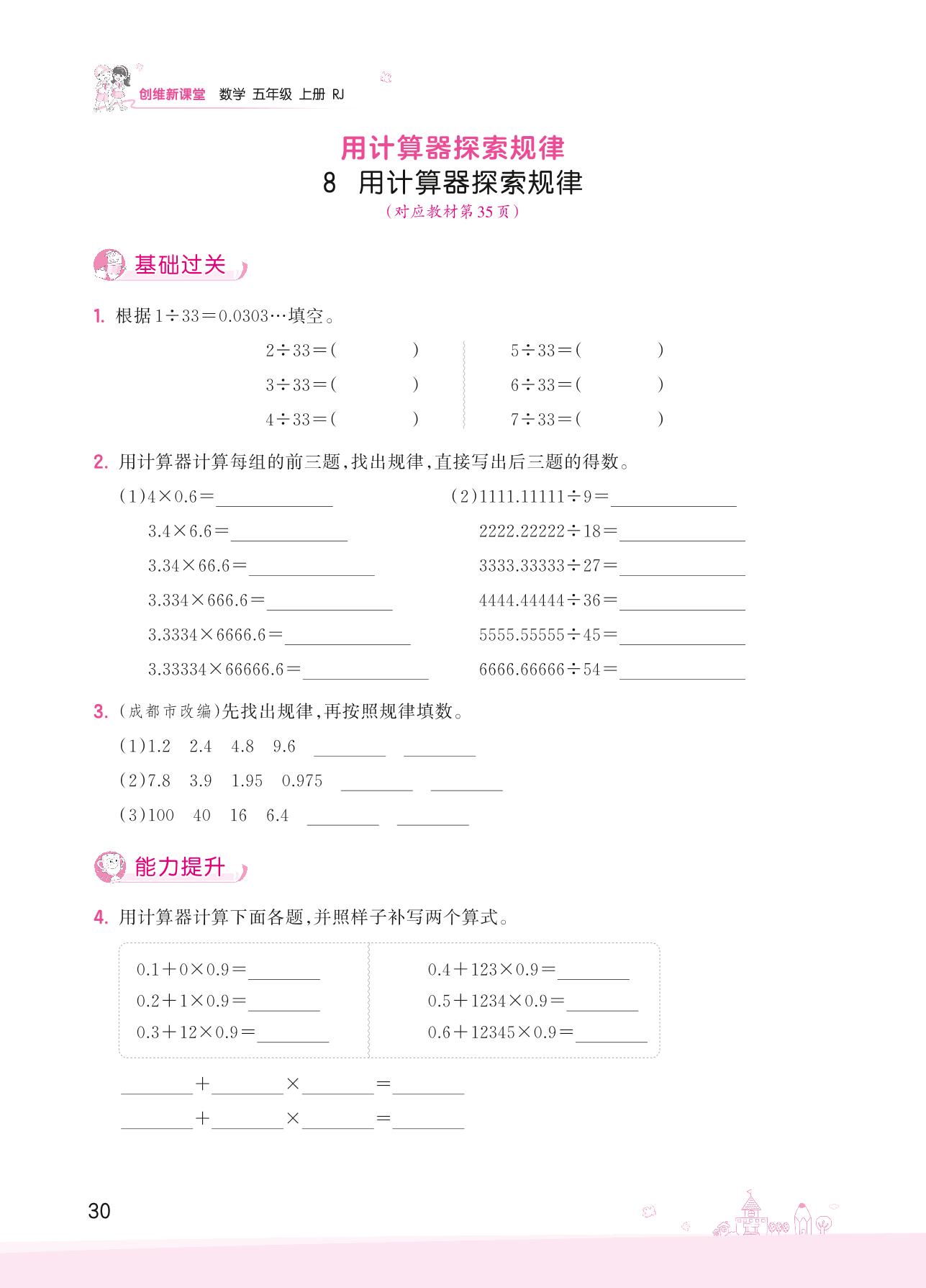 2022上册五年级数学人教版 三 小数除法——8 用计算器探索规律