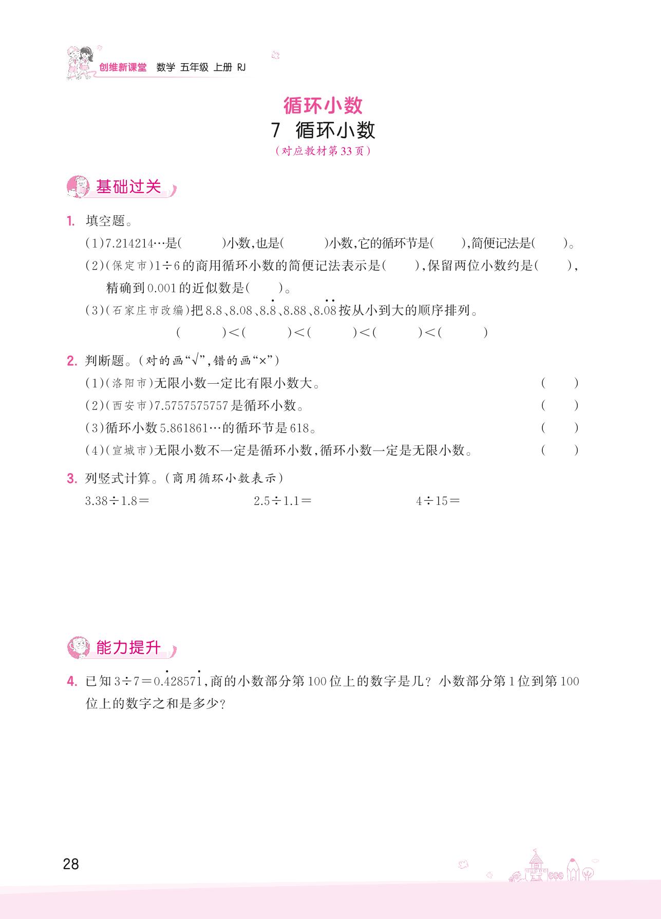 2022上册五年级数学人教版 三 小数除法——7 循环小数