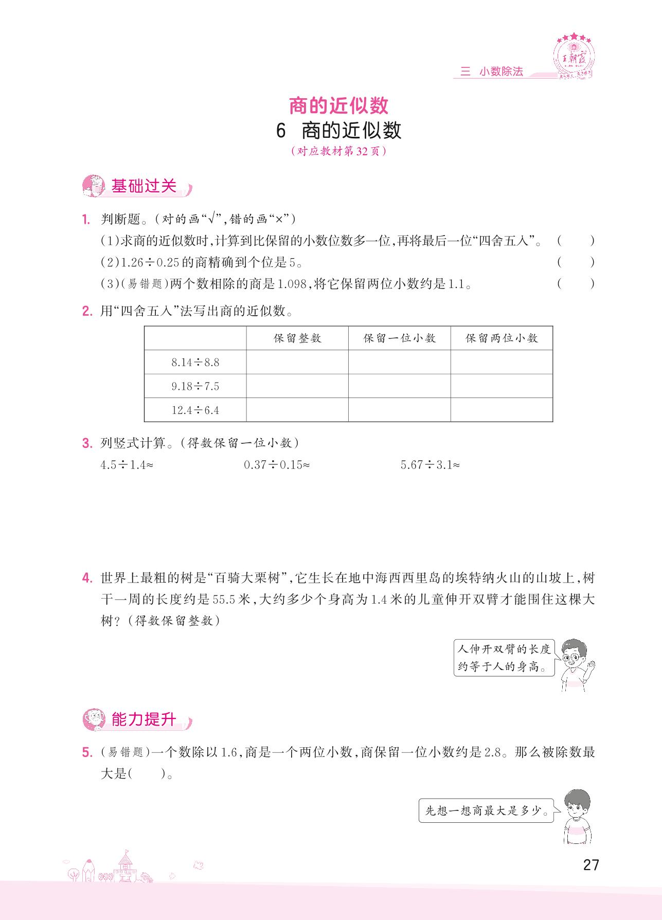 2022上册五年级数学人教版 三 小数除法——6 商的近似数