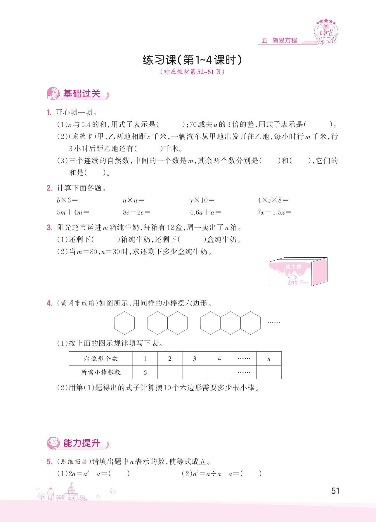 2022上册五年级数学人教版 五 简易方程——练习课(第1~4课时)