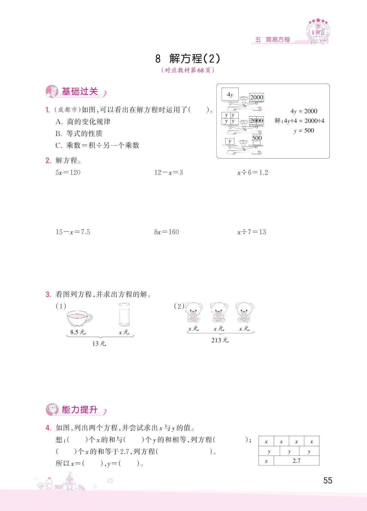 2022上册五年级数学人教版 五 简易方程——8 解方程(2)