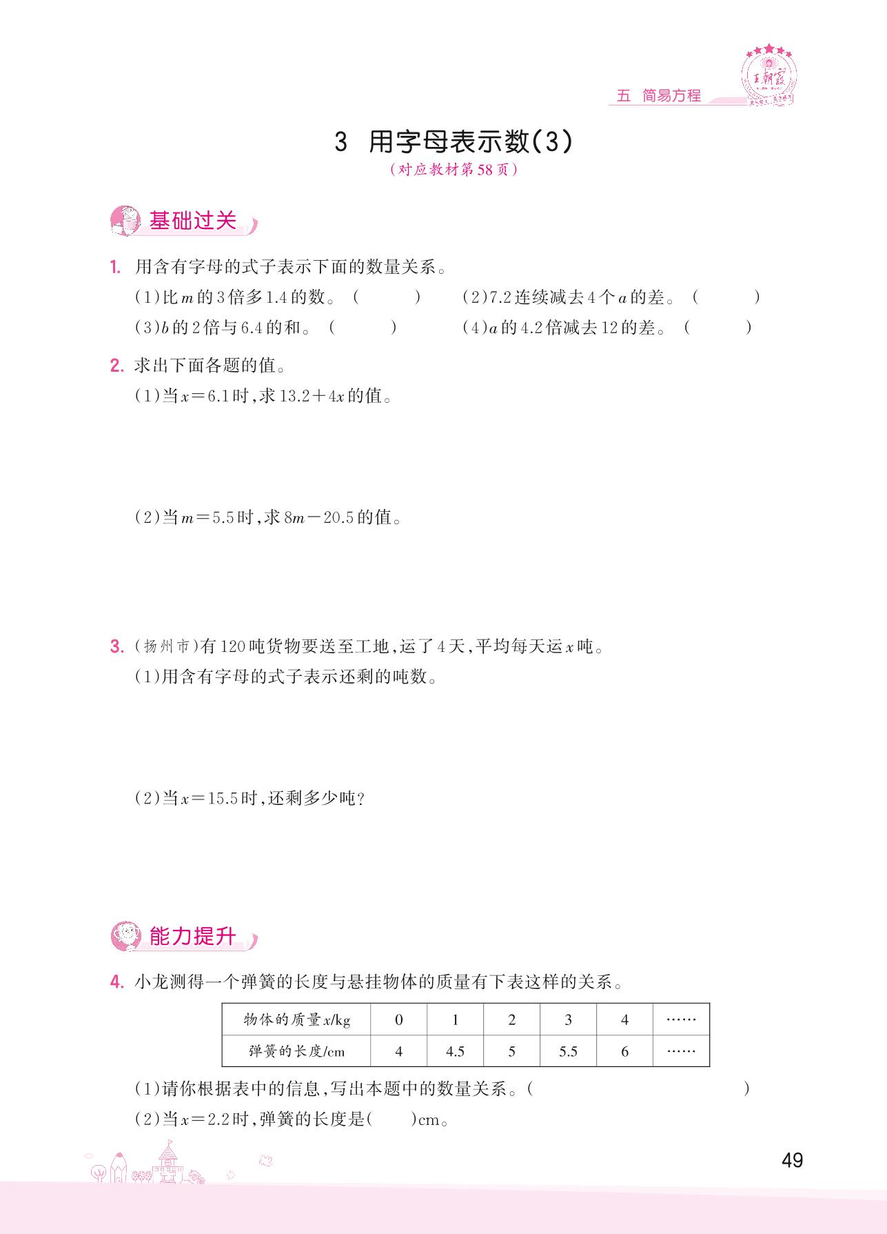 2022上册五年级数学人教版 五 简易方程——3 用字母表示数(3)