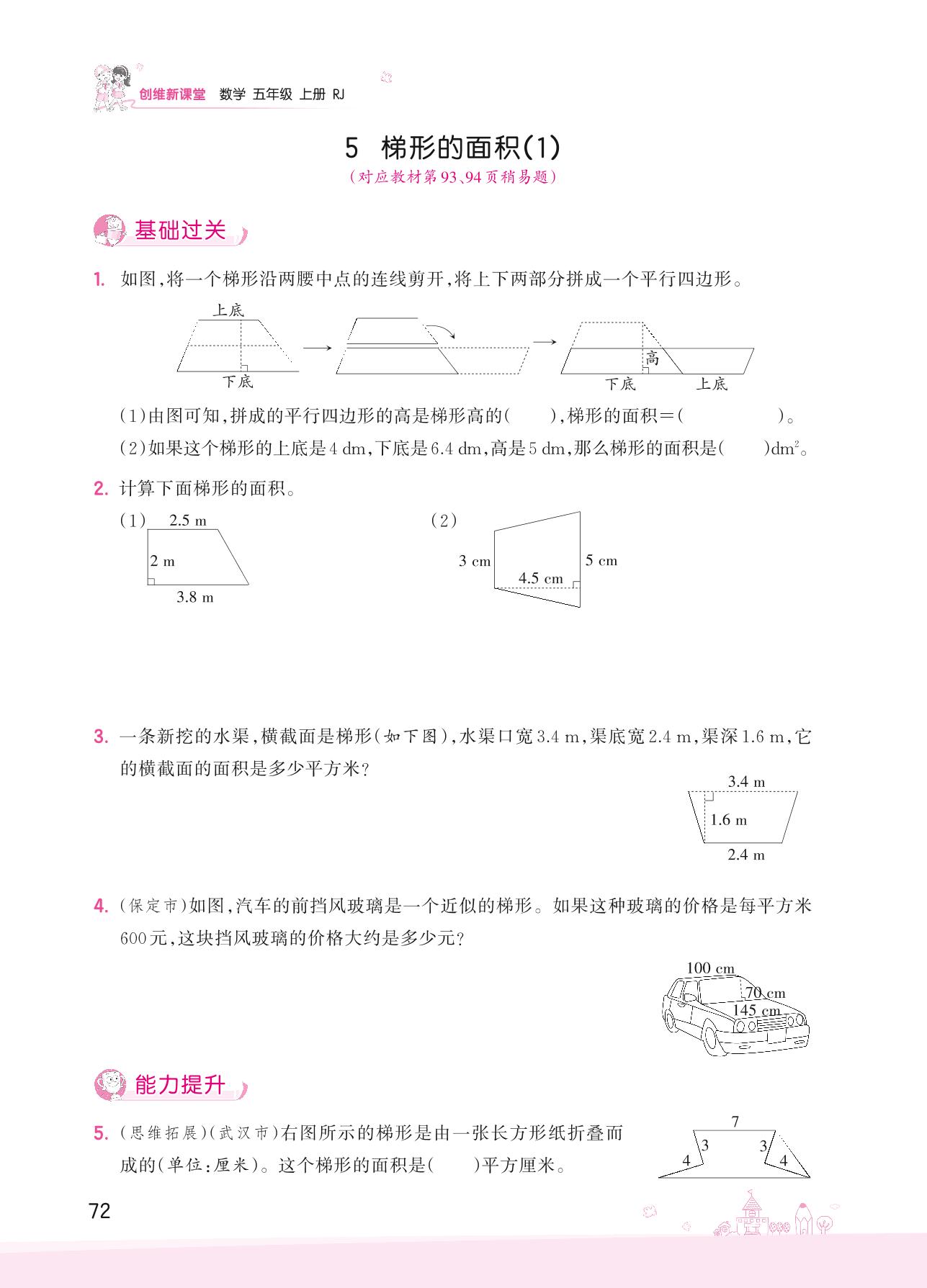2022上册五年级数学人教版 六 多边形的面积——5 梯形的面积(1)