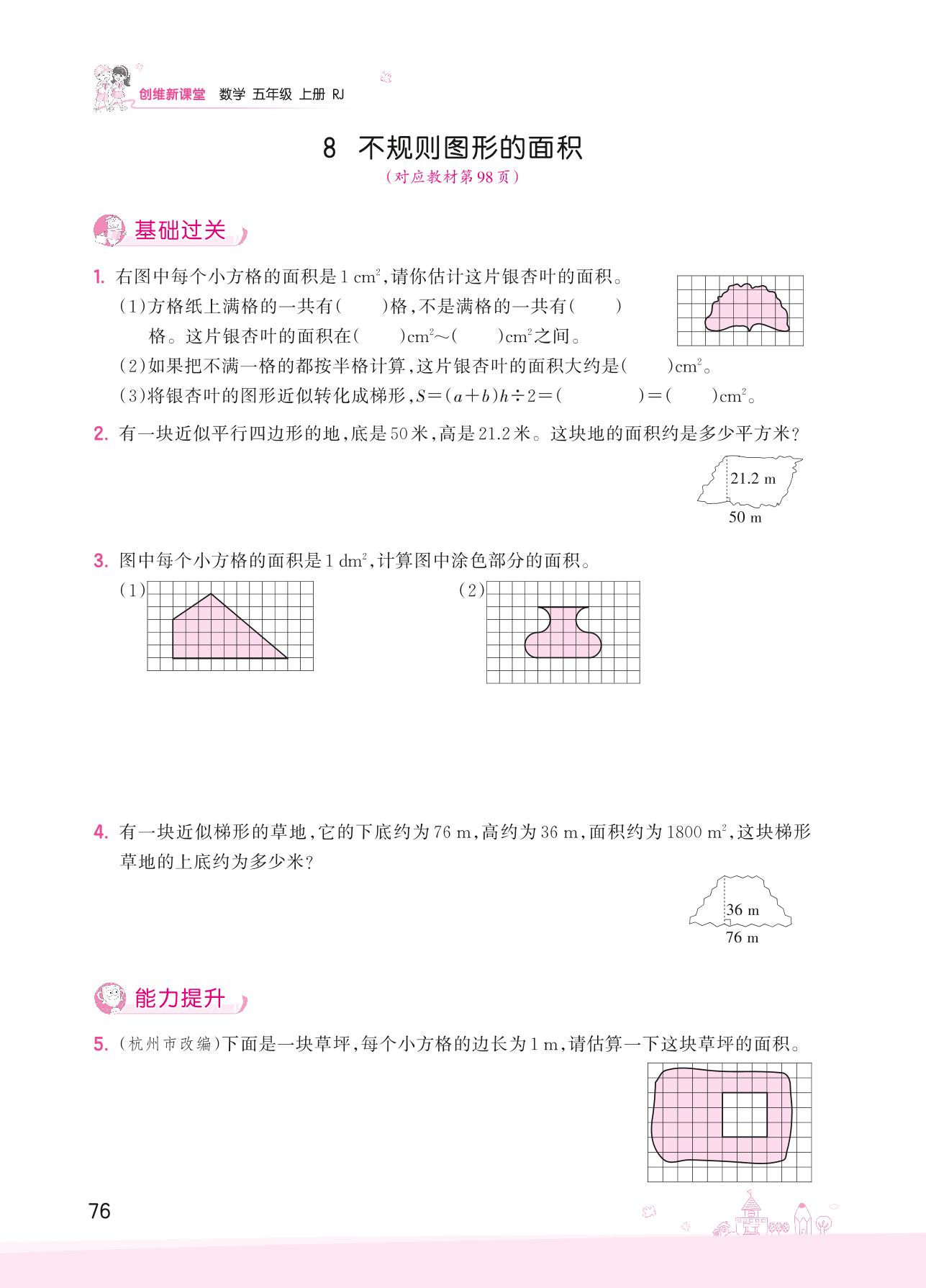 2022上册五年级数学人教版 六 多边形的面积——8 不规则图形的面积