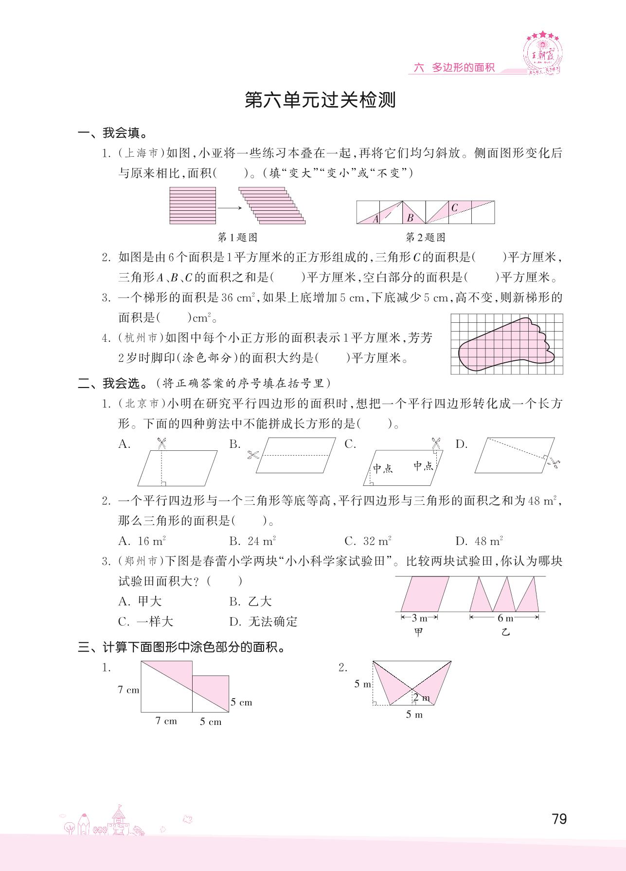 2022上册五年级数学人教版 六 多边形的面积——第六单元过关检测