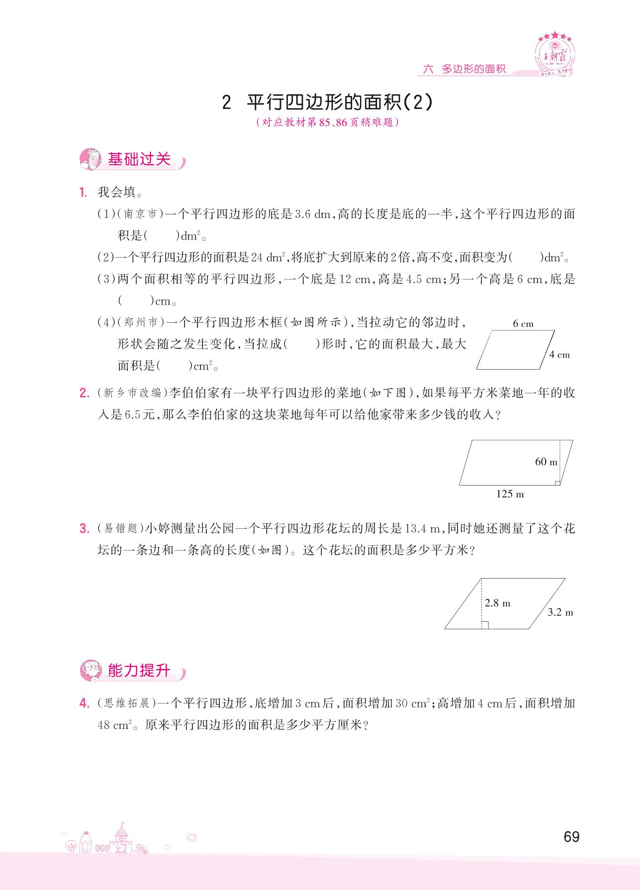 2022上册五年级数学人教版 六 多边形的面积——2 平行四边形的面积(2)
