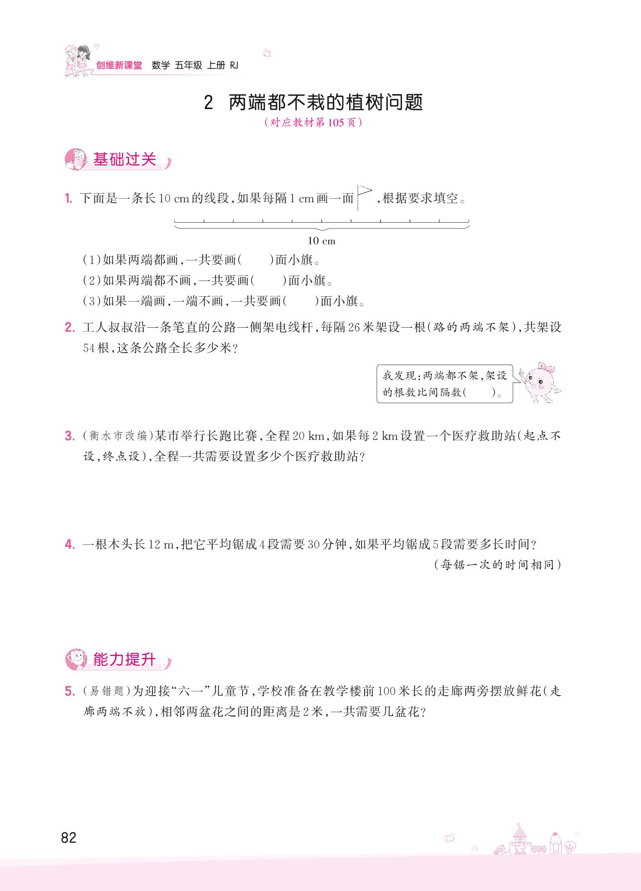 2022上册五年级数学人教版 七 数学广角 植树问题——2 两端都不栽的植树问题