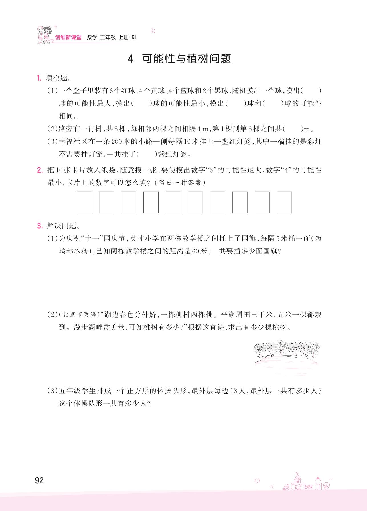 2022上册五年级数学人教版 总复习——4 可能性与植树问题