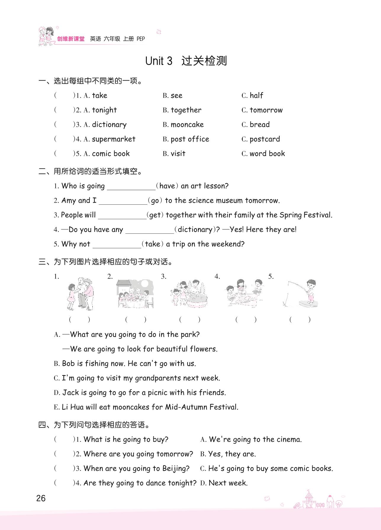 2022上册六年级英语人教PEP版 Unit 3 过关检测