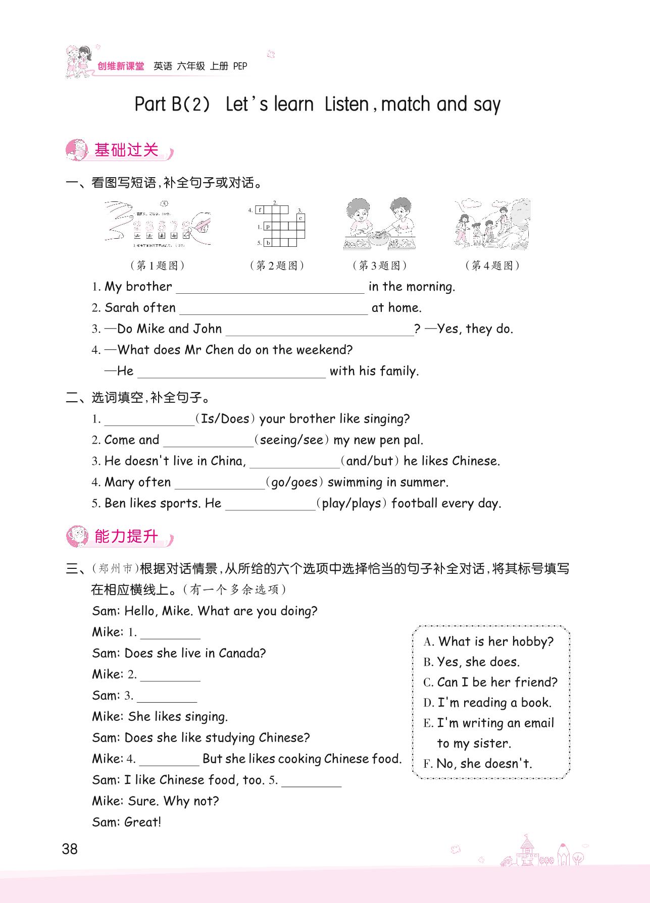 2022上册六年级英语人教PEP版 Unit 4—Part B(2) Let’s learn Listen,match and say