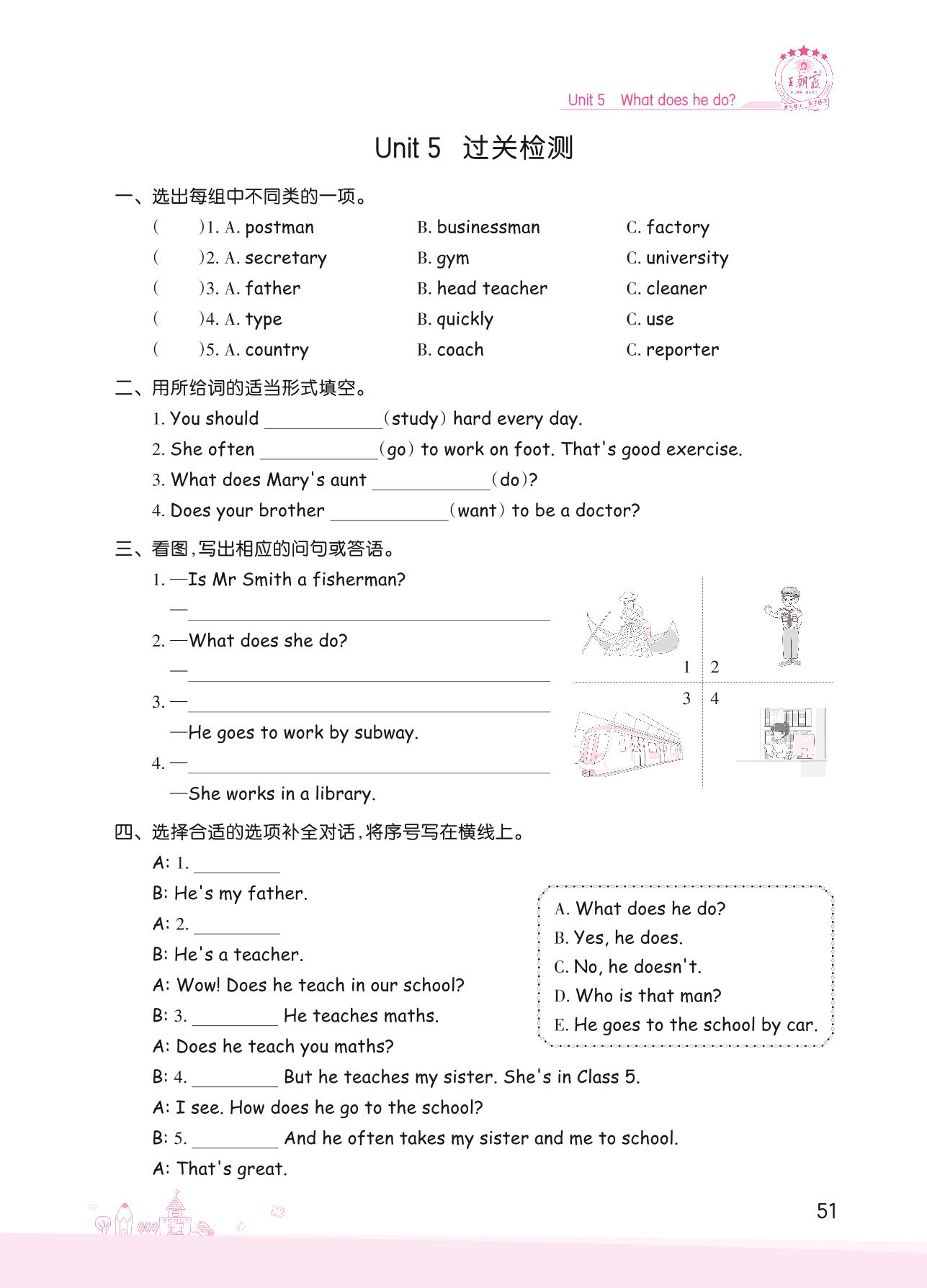 2022上册六年级英语人教PEP版 Unit 5 过关检测