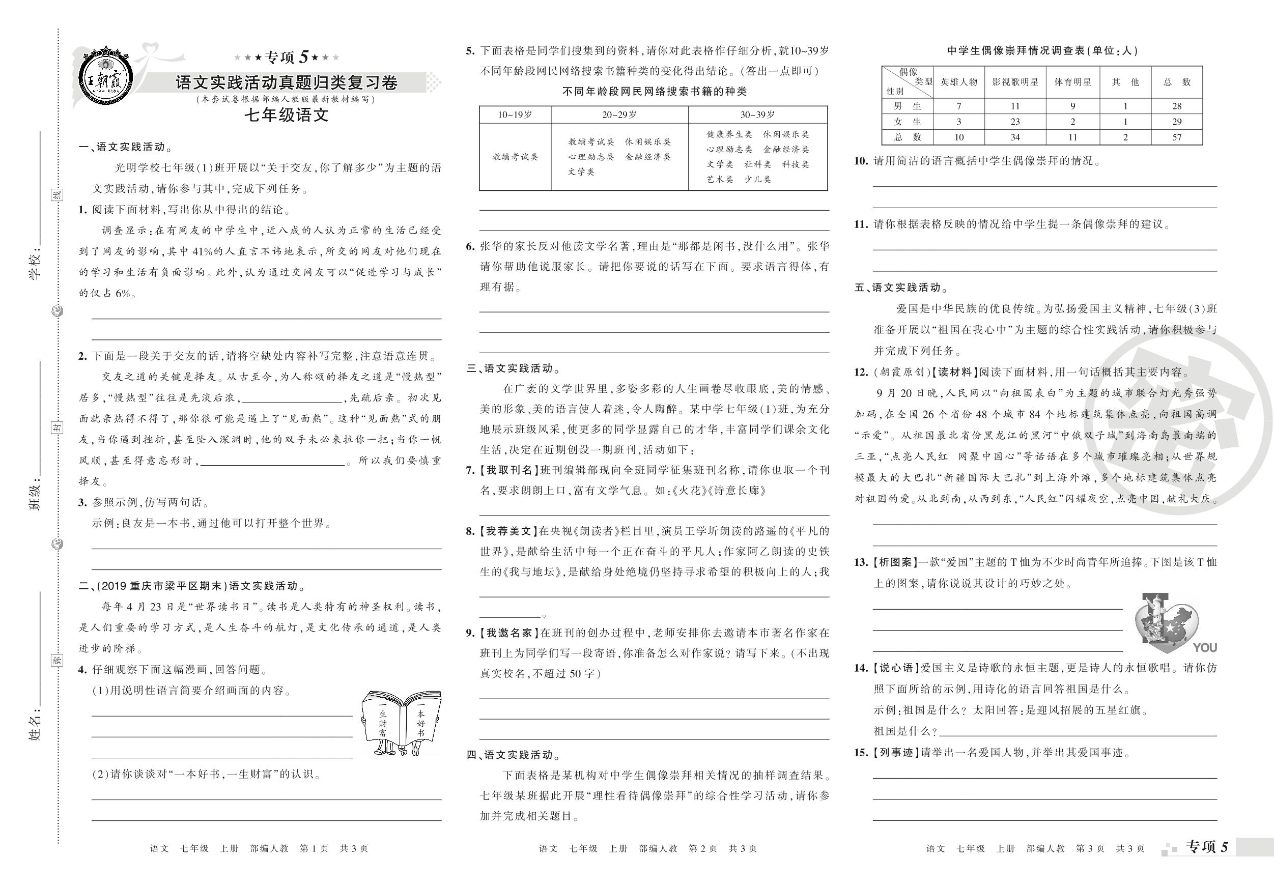 王朝霞期末专项卷——语文实践活动、文言文阅读真题归类复习七年级上册语文(人教版)_R21080234418【0】