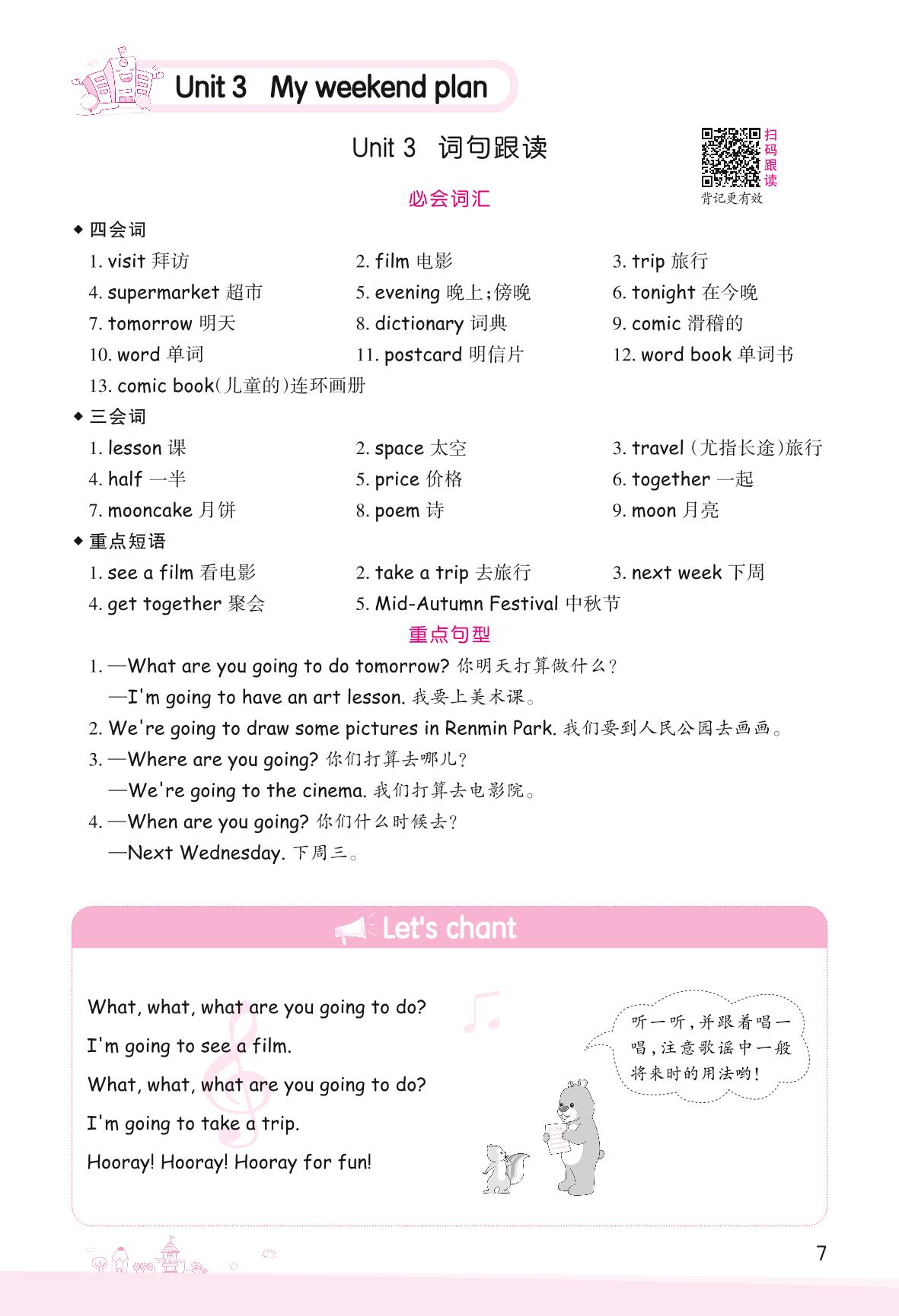 2022上册六年级英语人教PEP版 Unit 3 My weekend plan—词句跟读