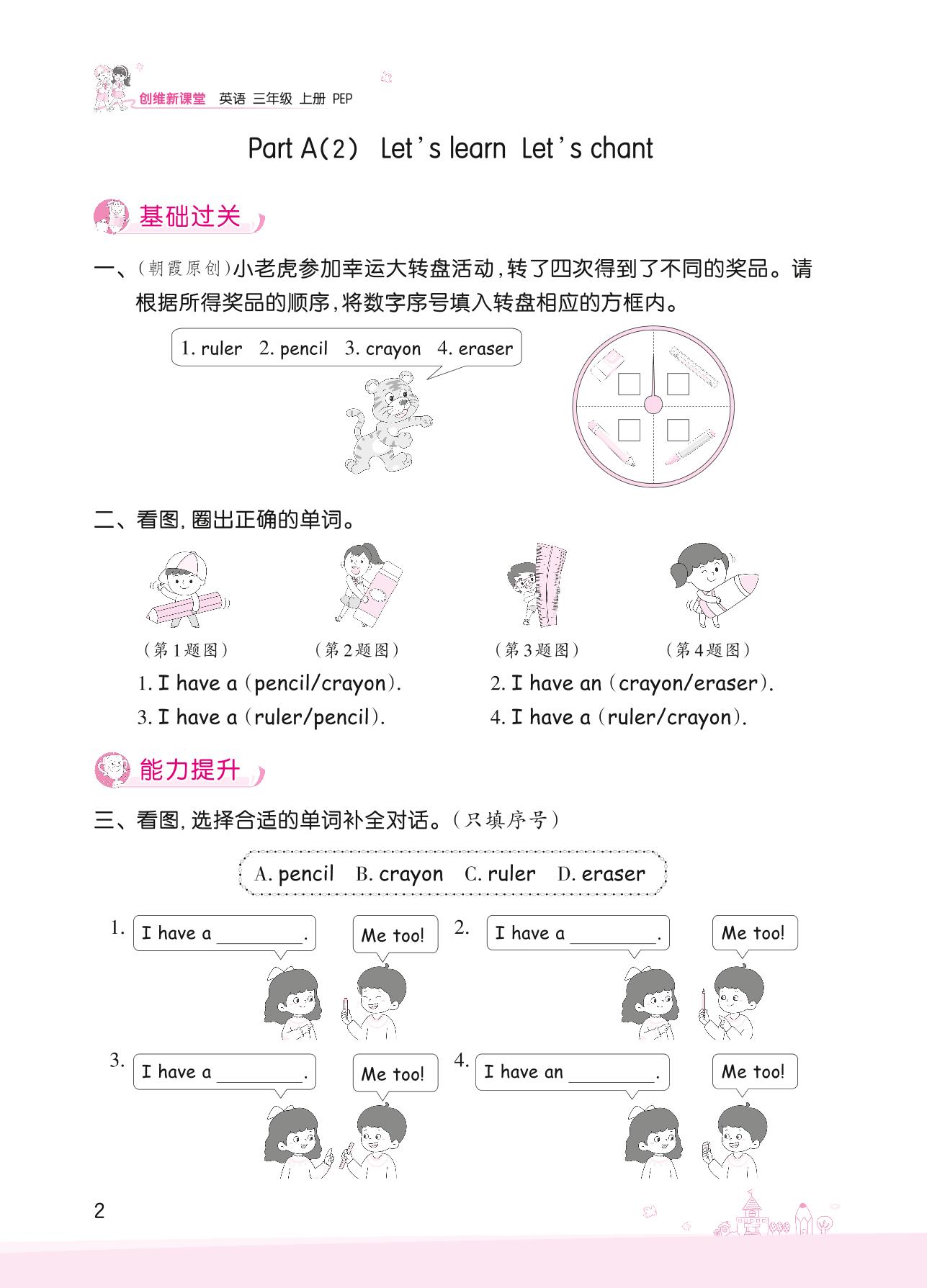 三年级英语人教PEP版(三起始)上册课时作业