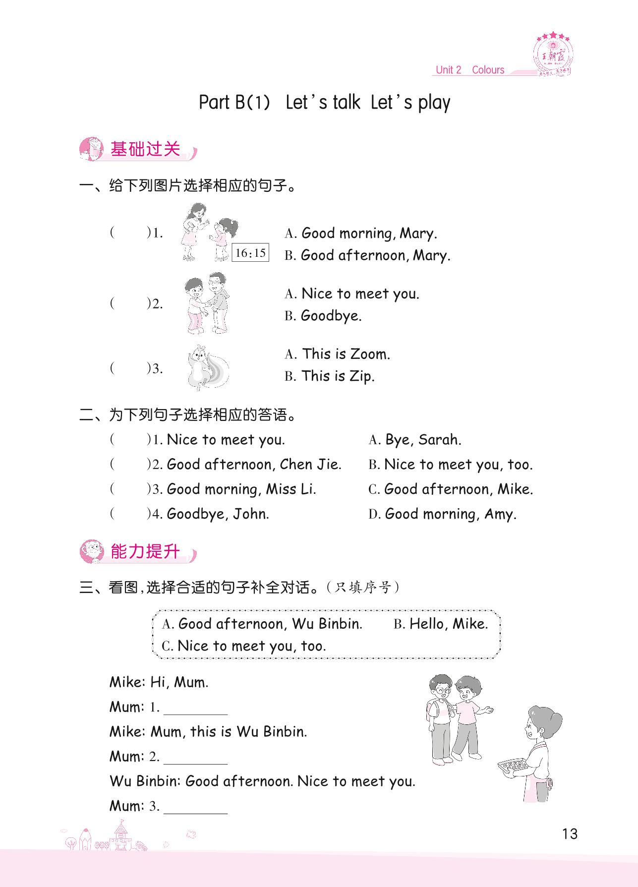 2022上册三年级英语人教PEP版 Unit 2—Part B(1) Let’s talk Let’s play