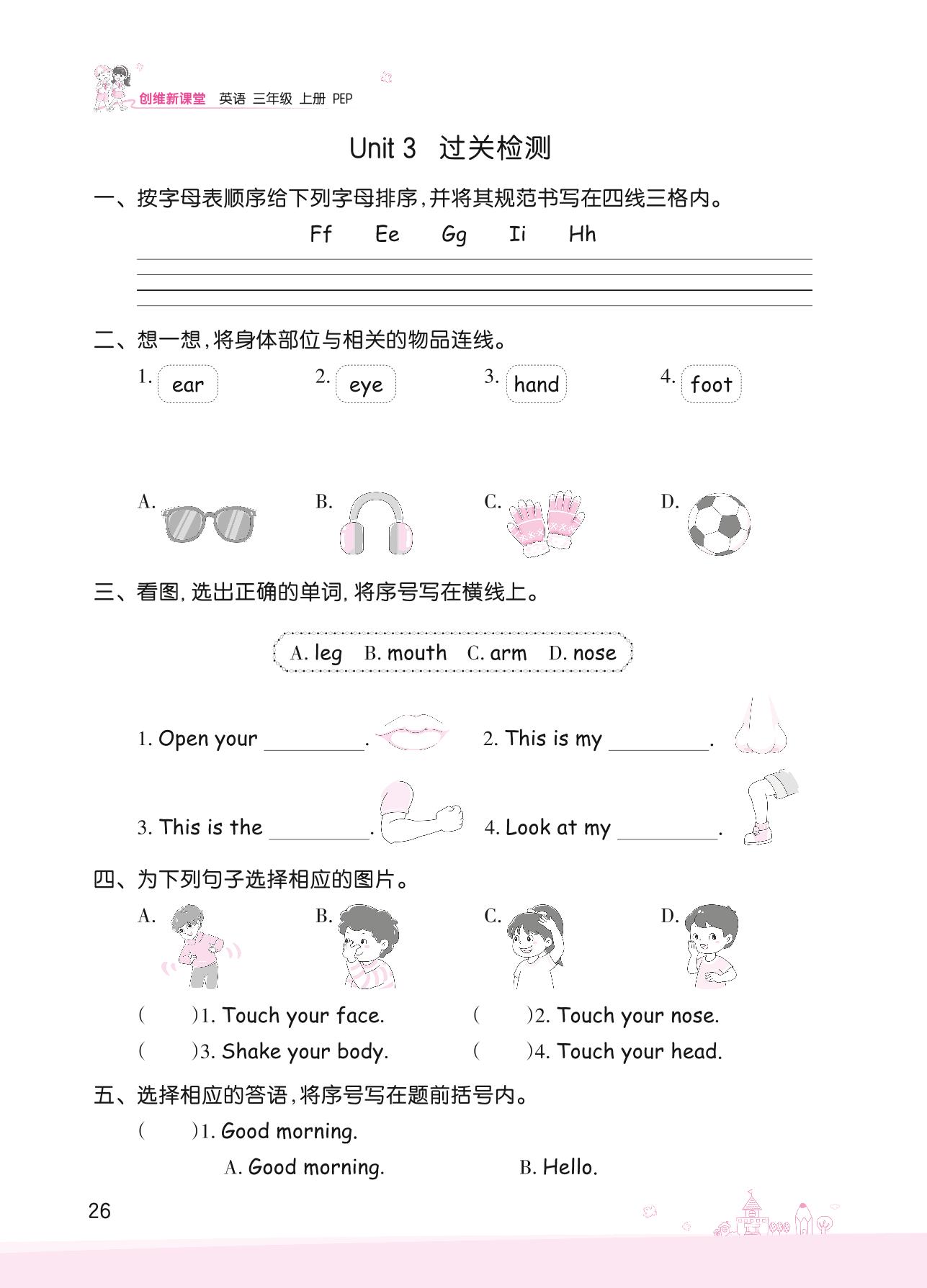 2022上册三年级英语人教PEP版 Unit 3 过关检测