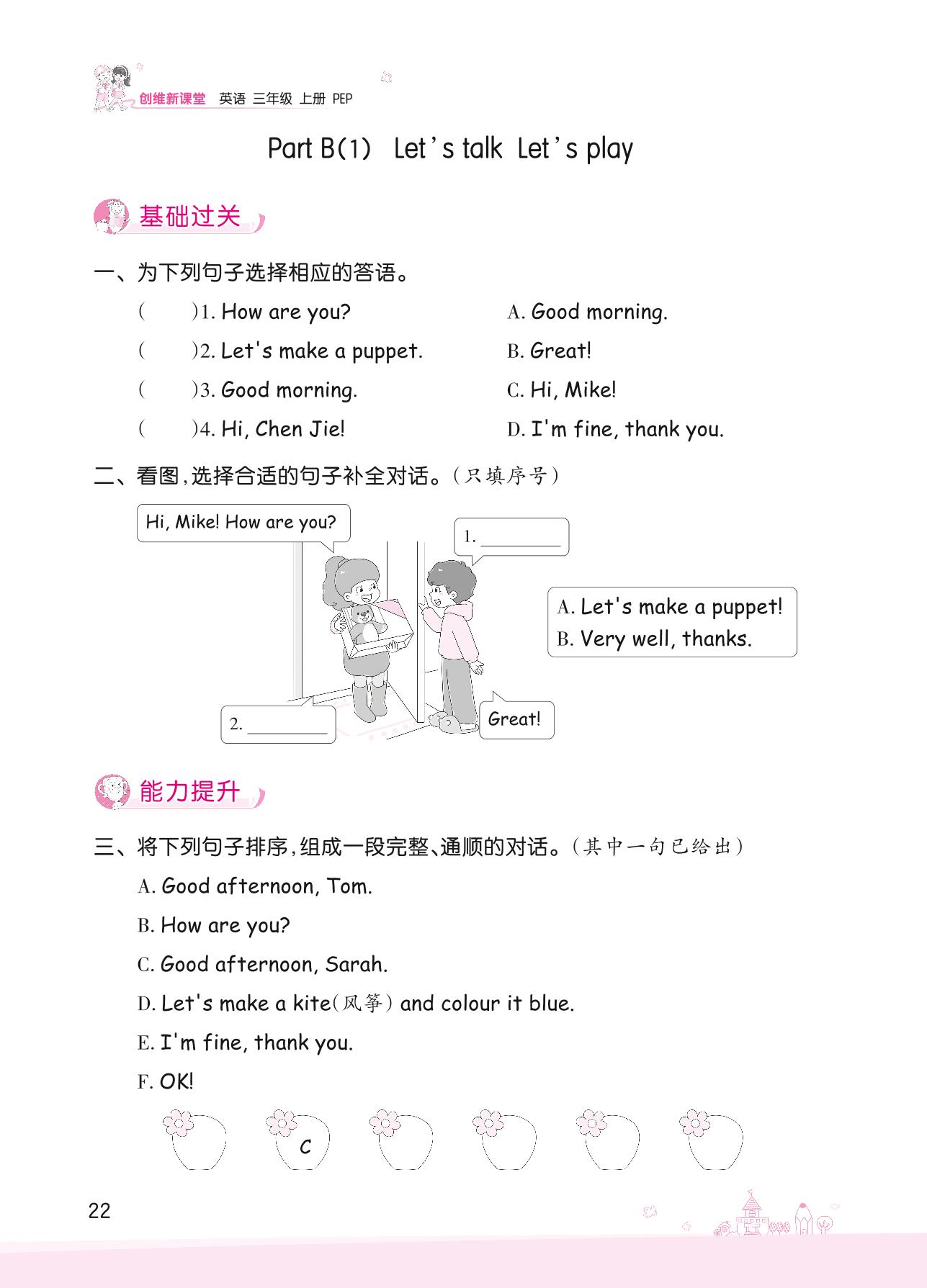 2022上册三年级英语人教PEP版 Unit 3—Part B(1) Let’s talk Let’s play