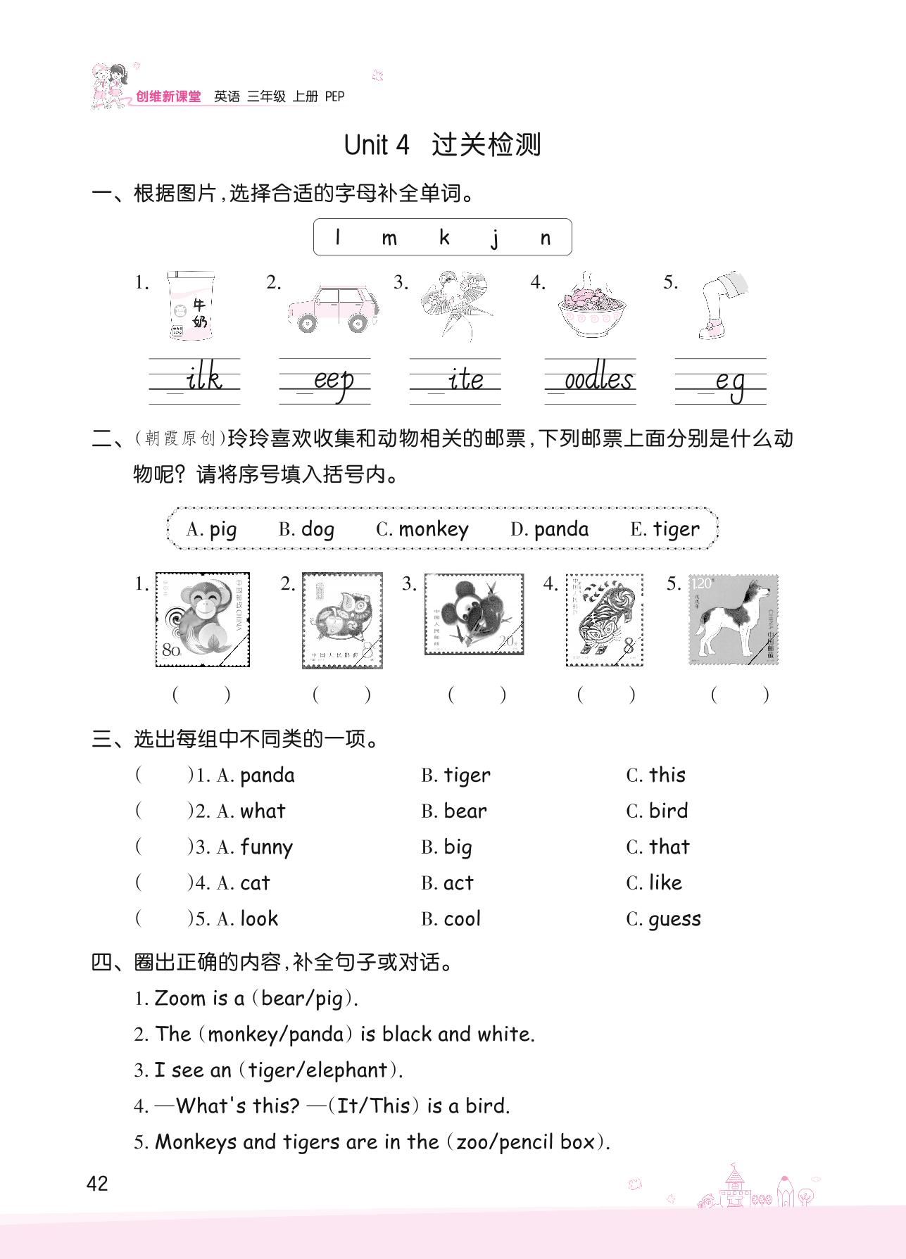 2022上册三年级英语人教PEP版 Unit 4 过关检测