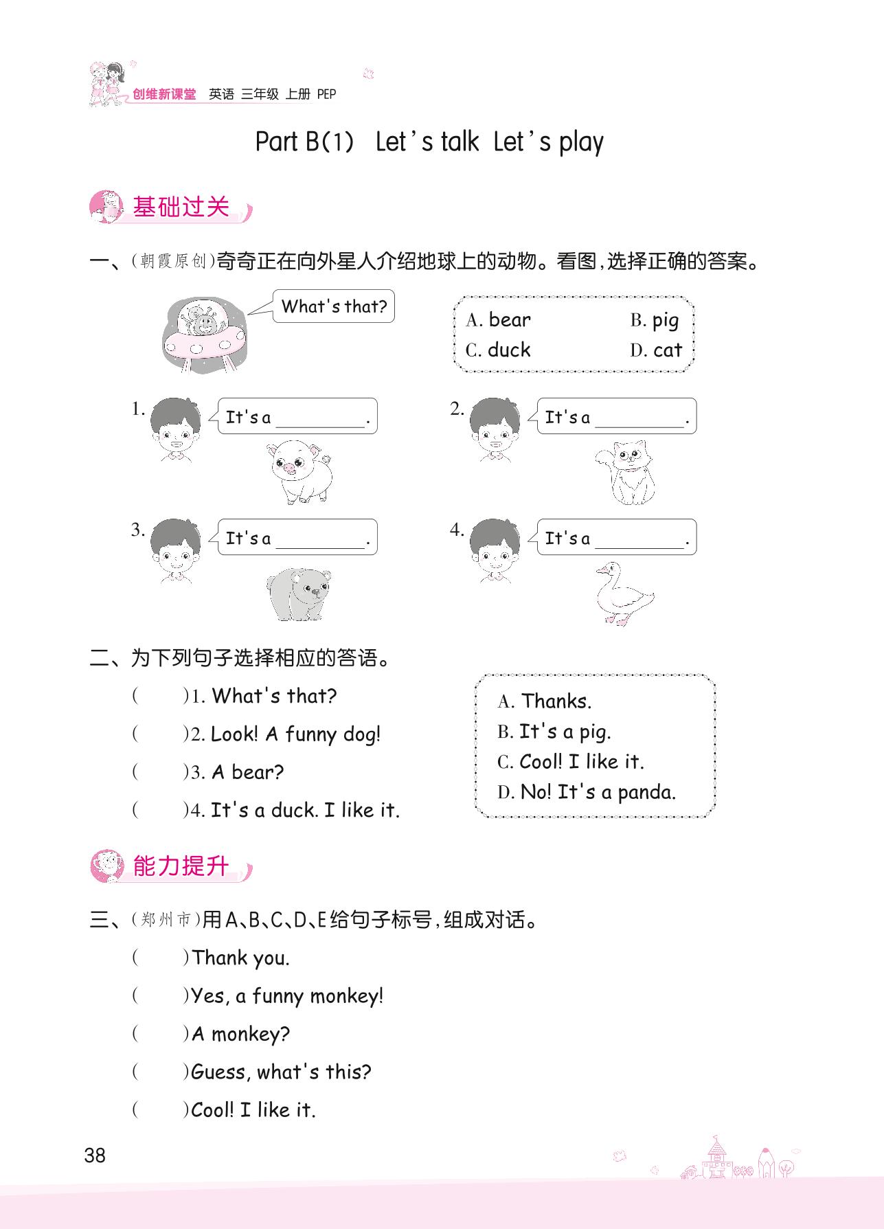 2022上册三年级英语人教PEP版 Unit 4—Part B(1) Let’s talk Let’s play