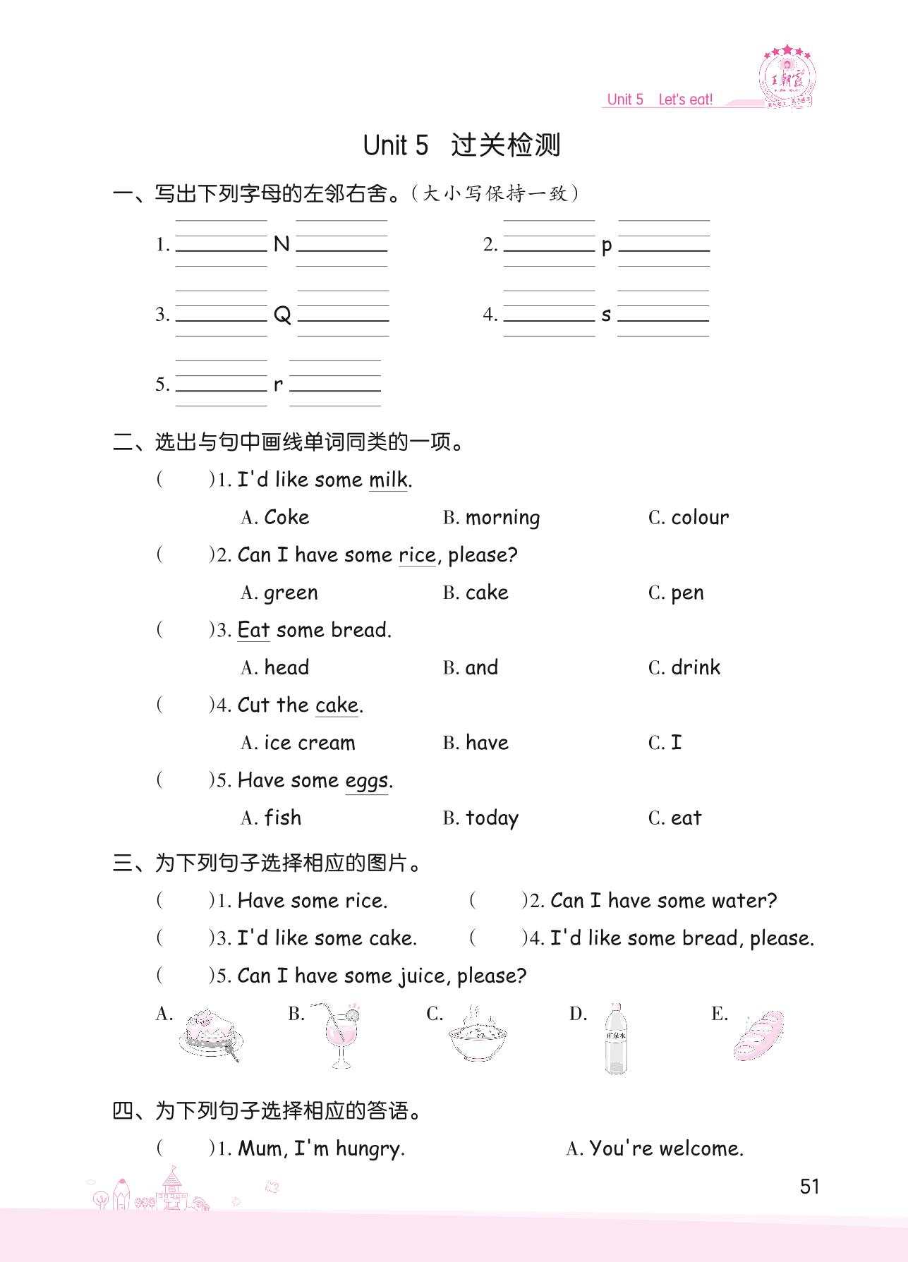 2022上册三年级英语人教PEP版 Unit 5 过关检测
