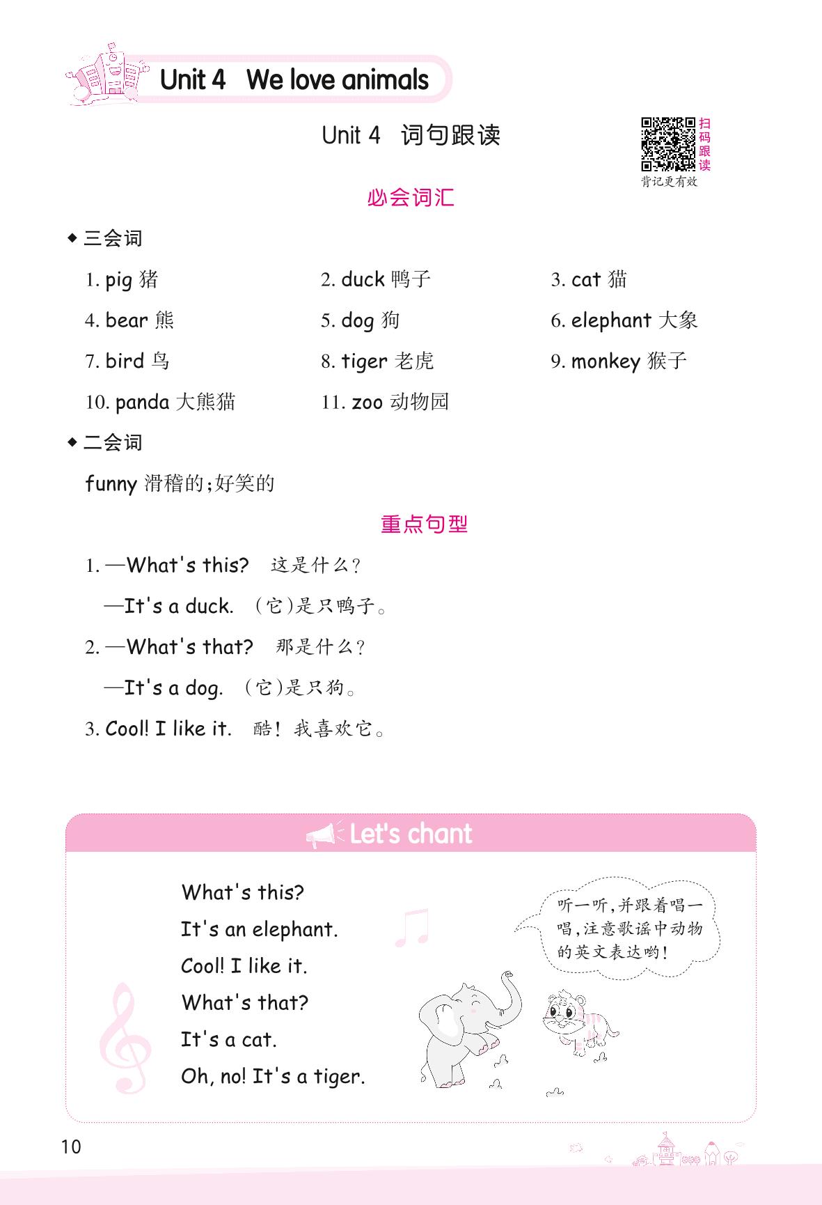 2022上册三年级英语人教PEP版 Unit 4 We love animals—词句跟读