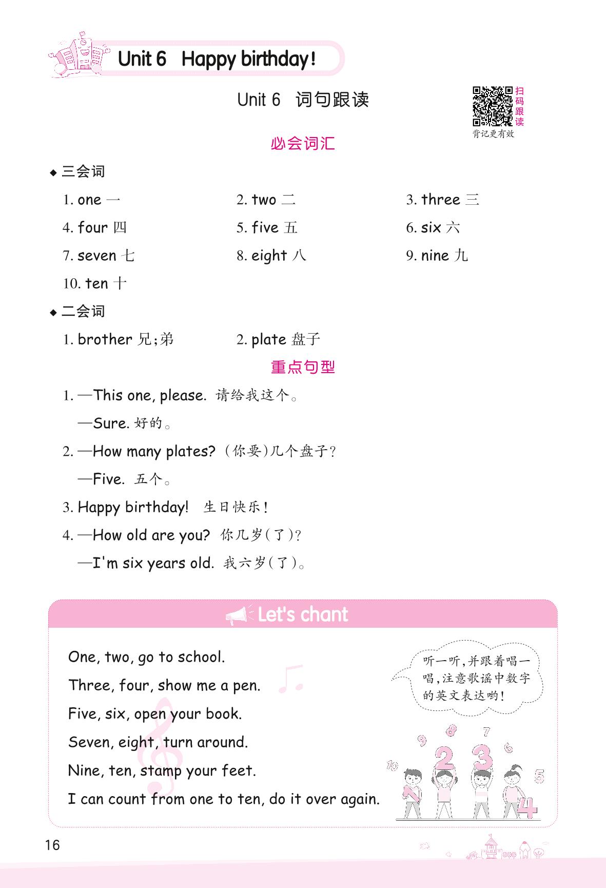 2022上册三年级英语人教PEP版 Unit 6 Happy birthday!—词句跟读