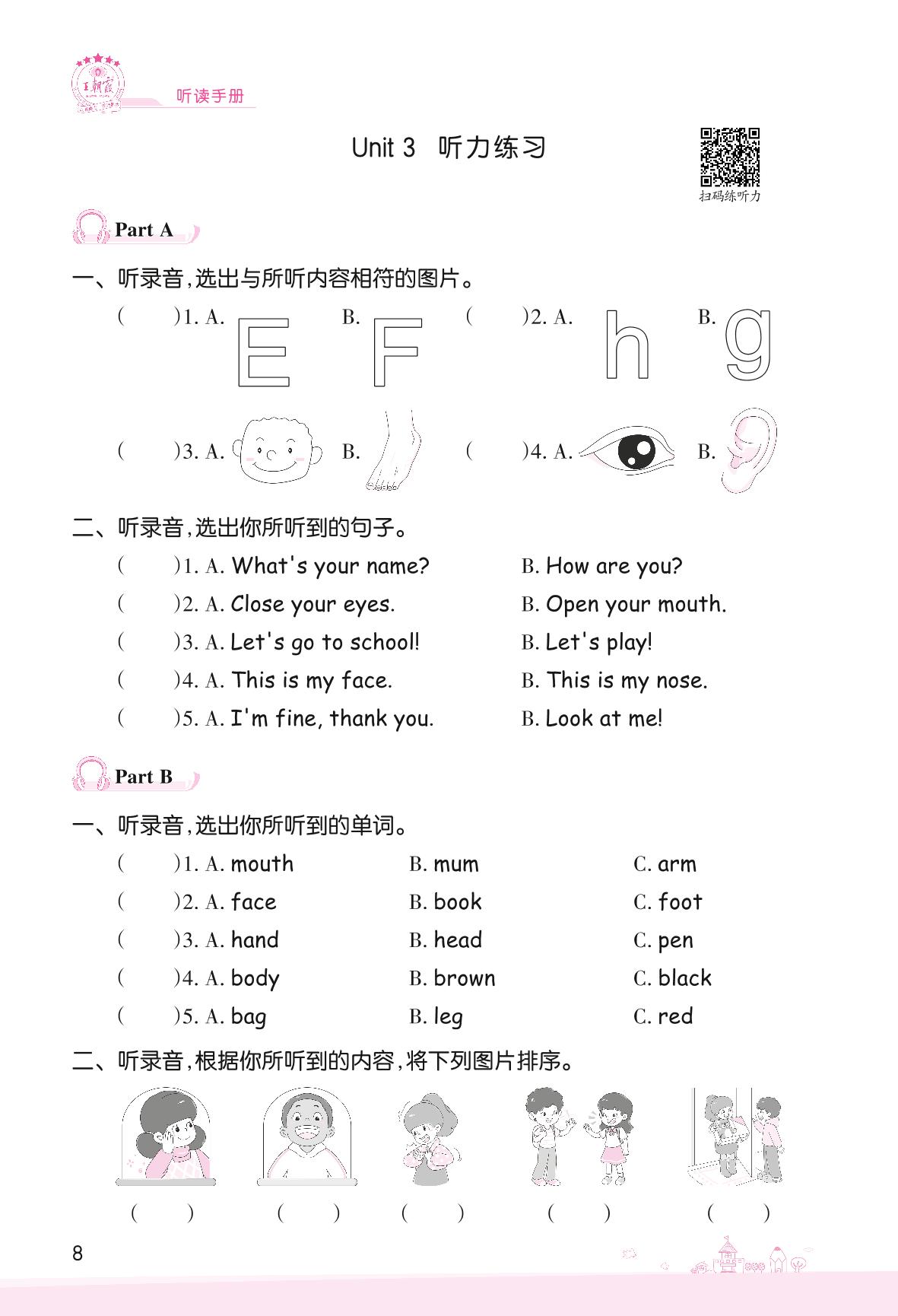 2022上册三年级英语人教PEP版 Unit 3 Look at me!—Part A、Part B 听力练习