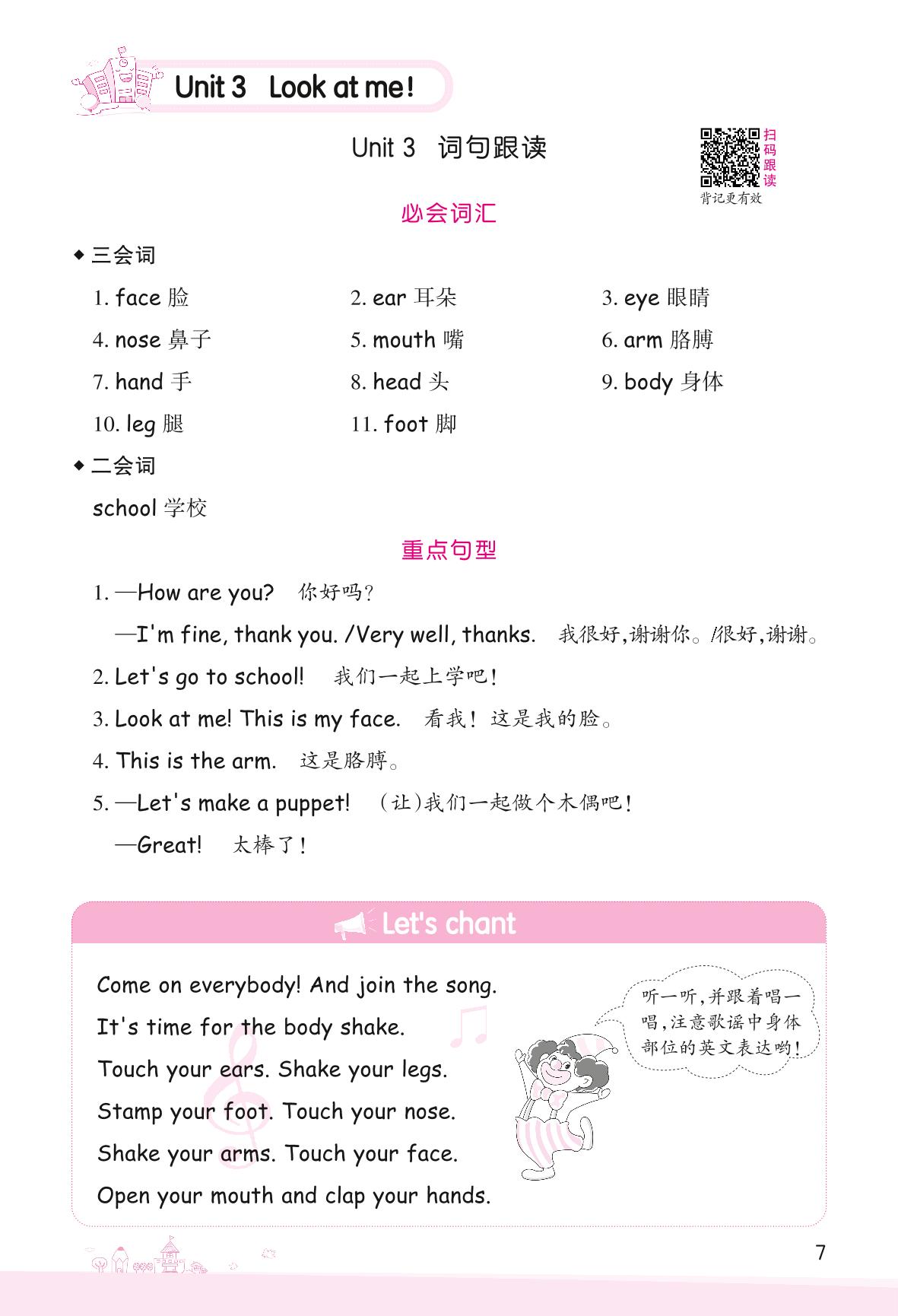 2022上册三年级英语人教PEP版 Unit 3 Look at me!—词句跟读
