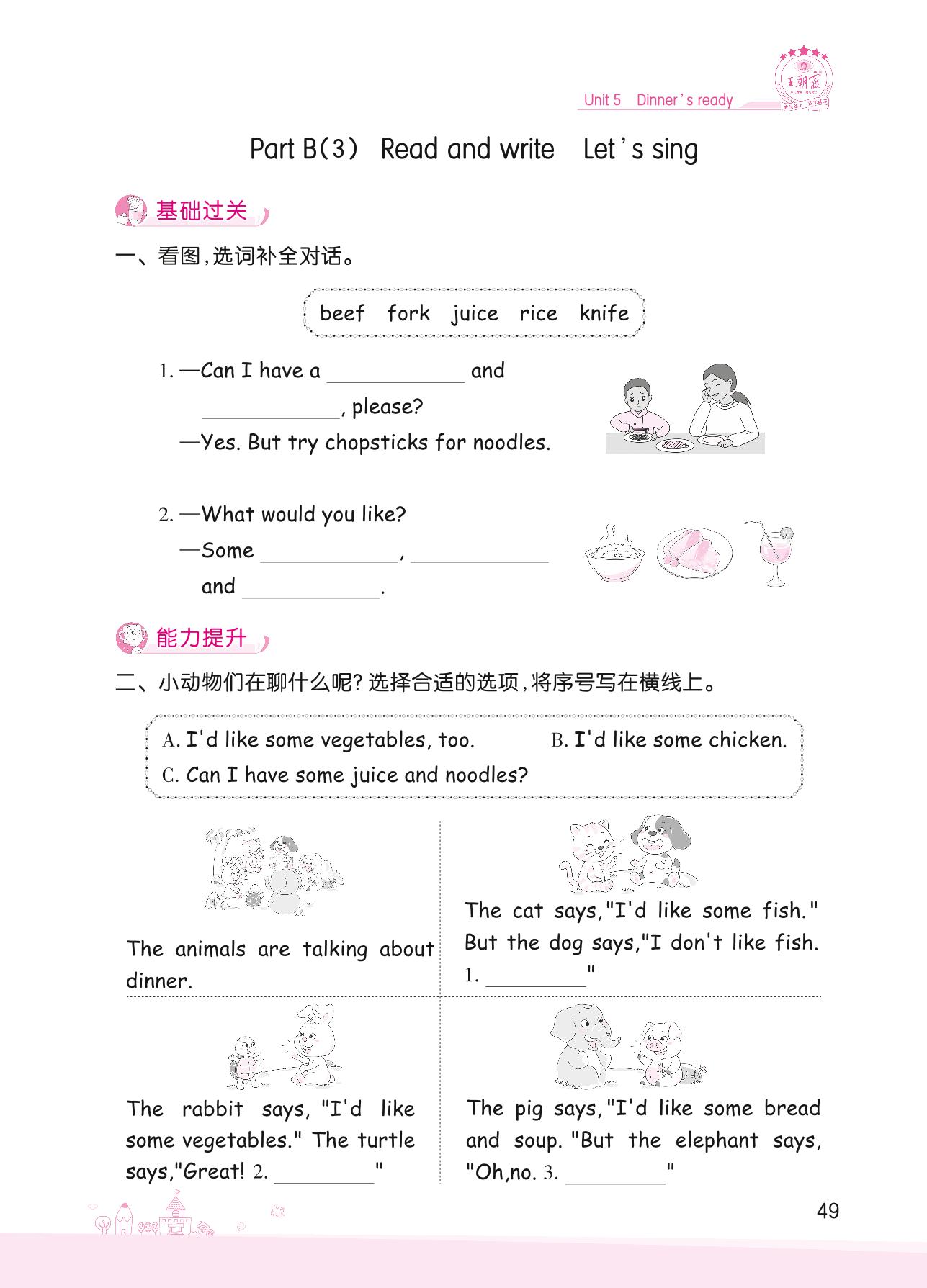 2022上册四年级英语人教PEP版 Unit 5—Part B(3) Read and write Let’s sing