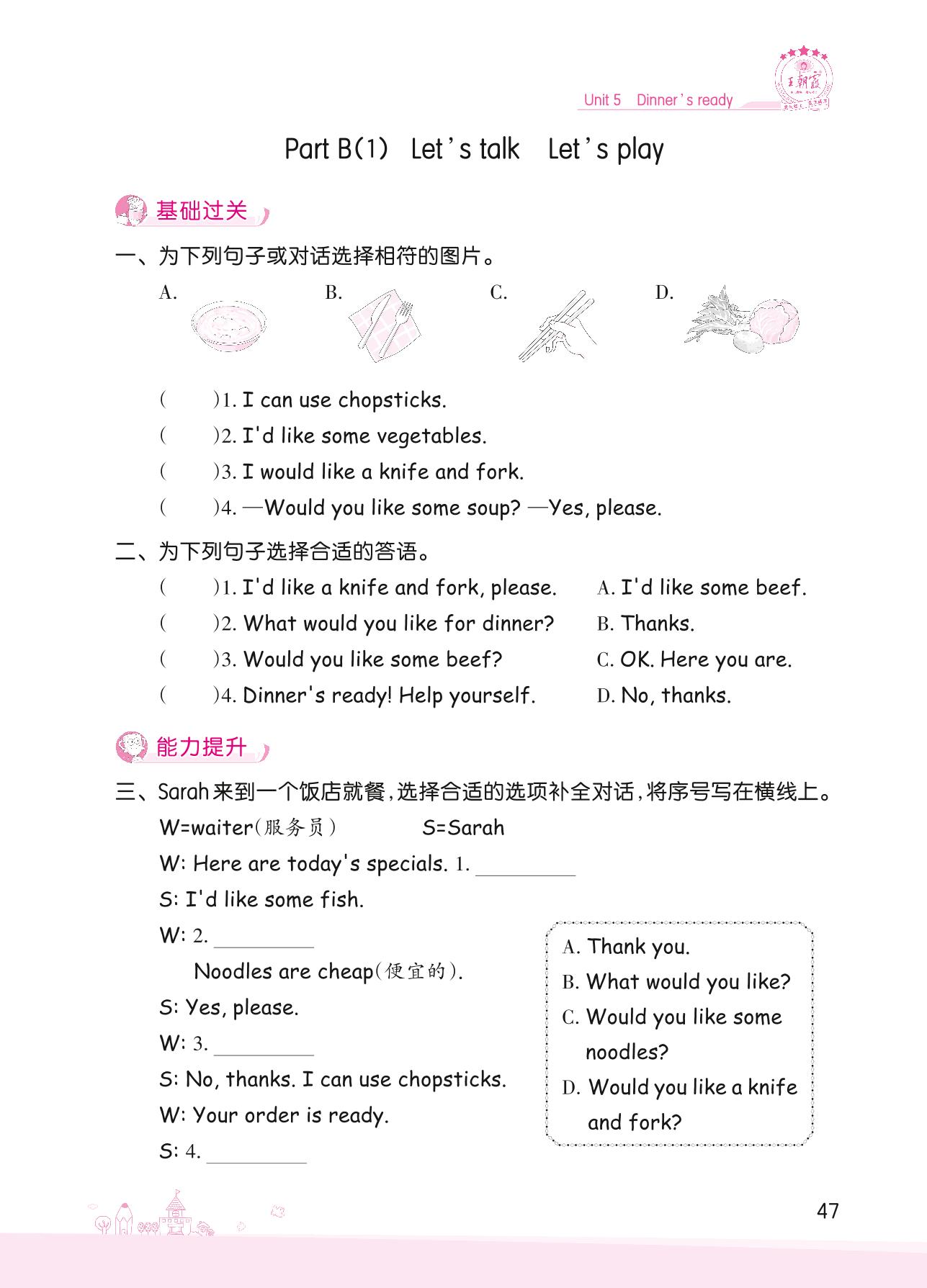 2022上册四年级英语人教PEP版 Unit 5—Part B(1) Let’s talk Let’s play