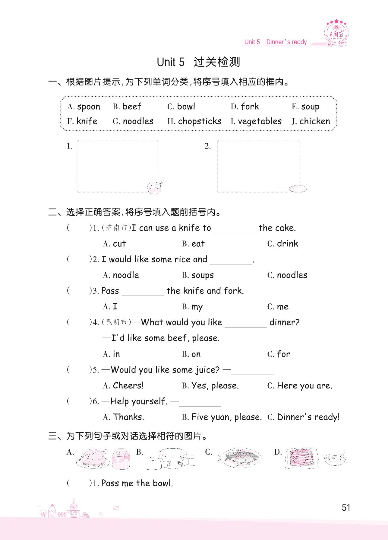 2022上册四年级英语人教PEP版 Unit 5 过关检测