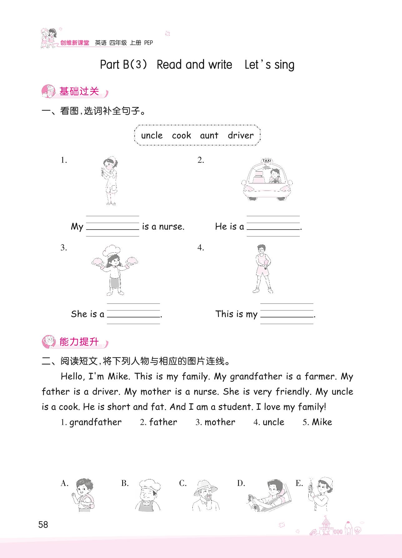 2022上册四年级英语人教PEP版 Unit 6—Part B(3) Read and write Let’s sing