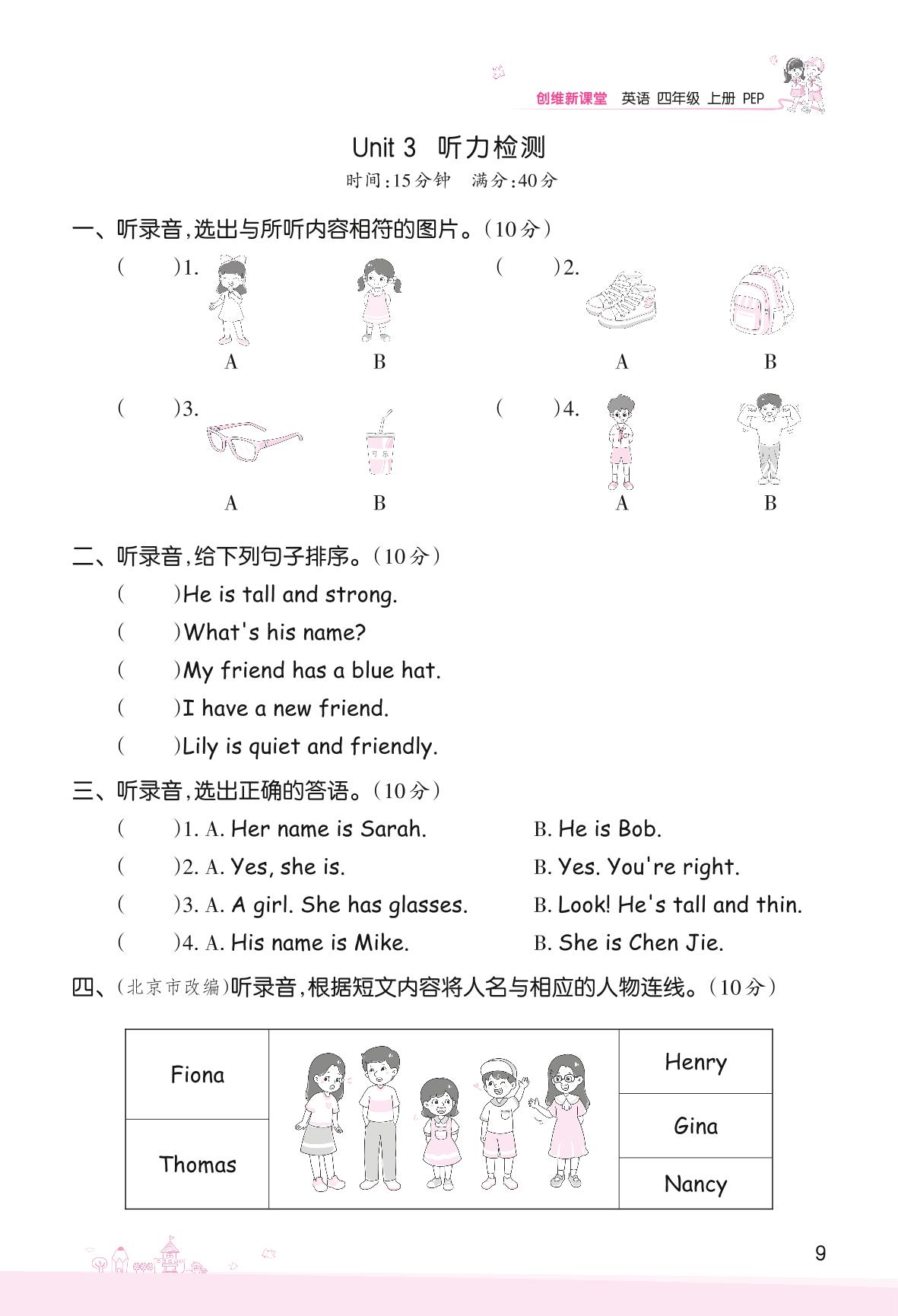2022上册四年级英语人教PEP版 Unit 3 My friends—听力检测