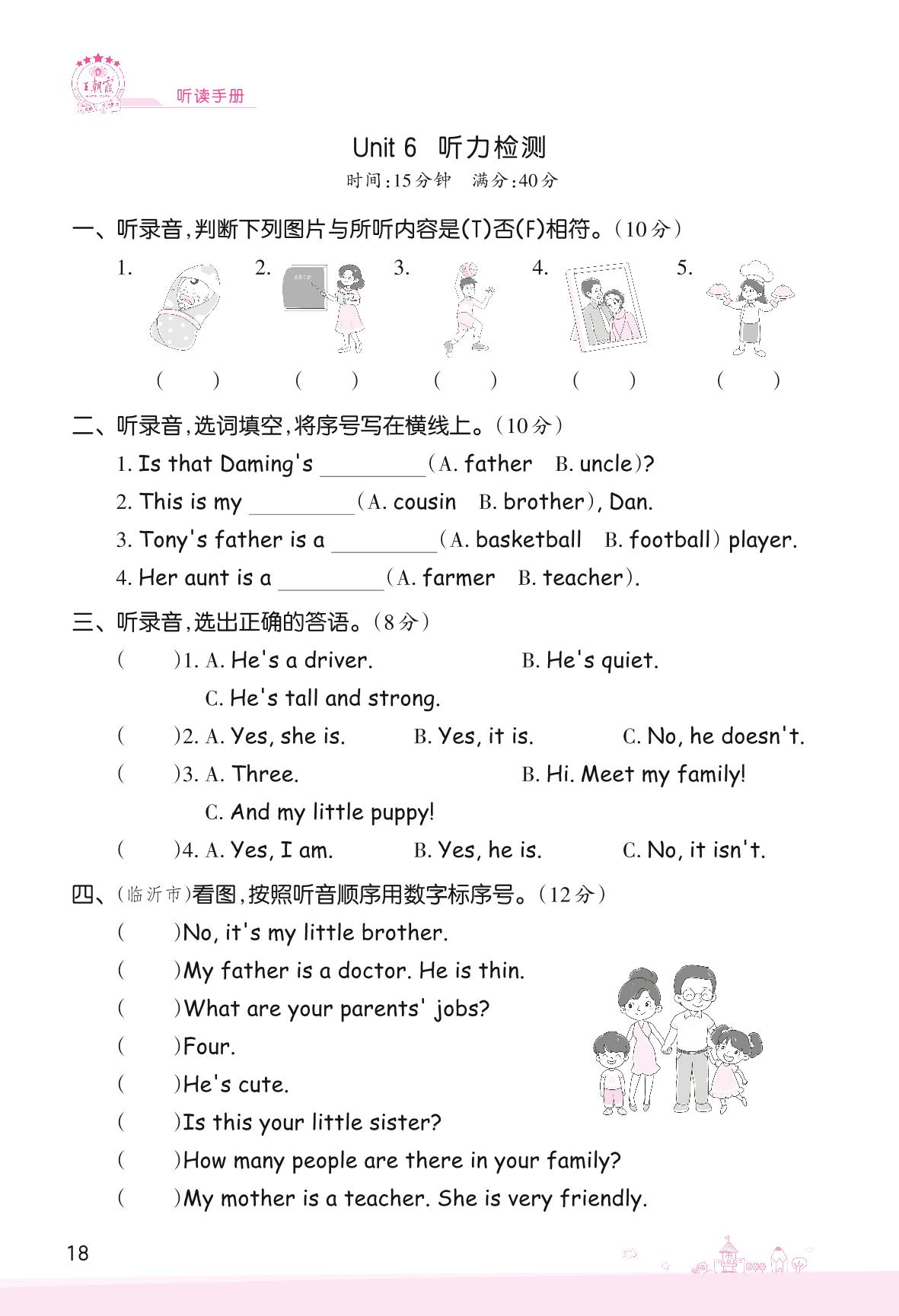 2022上册四年级英语人教PEP版 Unit 6 Meet my family!—听力检测
