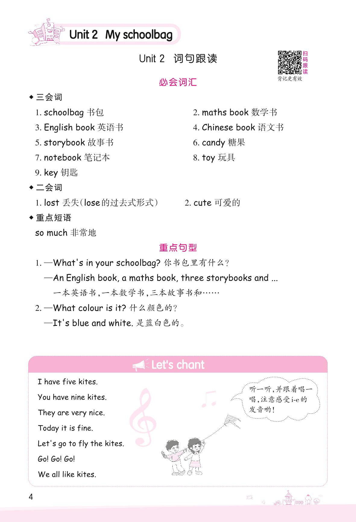 2022上册四年级英语人教PEP版 Unit 2 My schoolbag—词句跟读