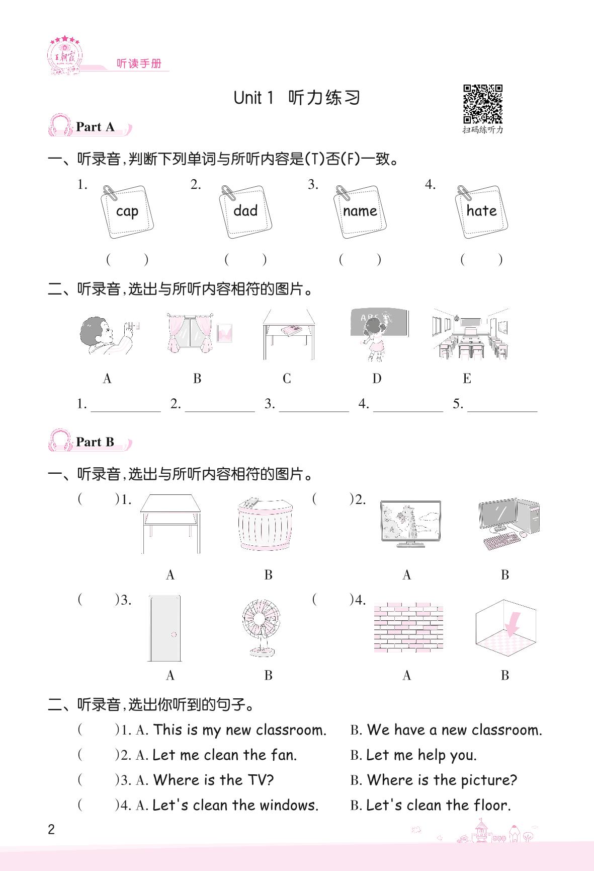 2022上册四年级英语人教PEP版 Unit 1 My classroom—Part A、Part B 听力练习
